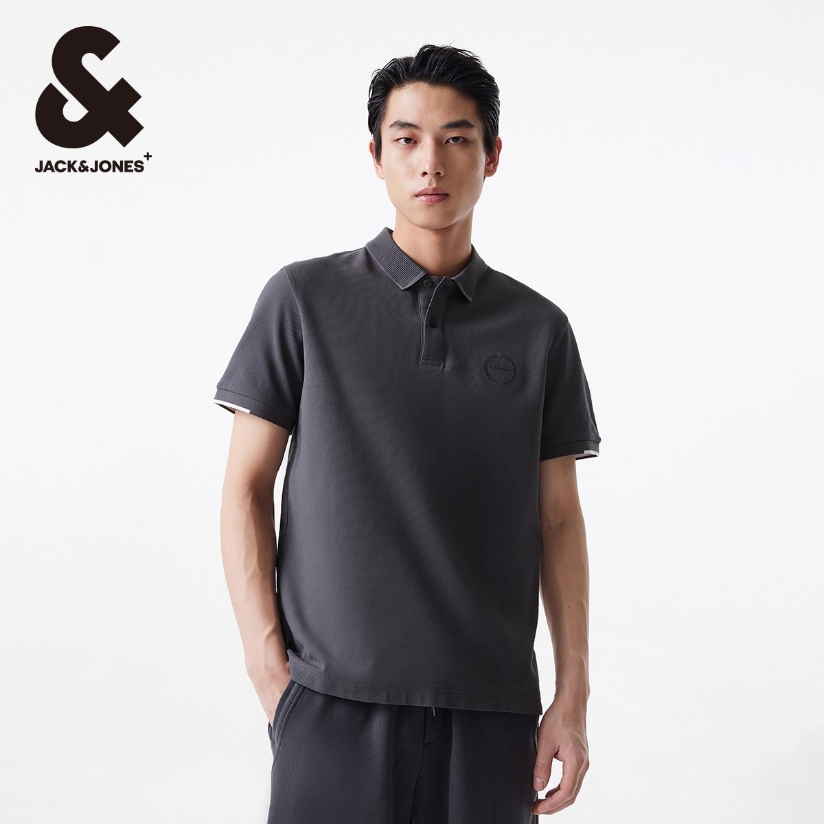 杰克琼斯冬翻领领口时尚潮流纽扣门襟图案刺绣款polo衫男装