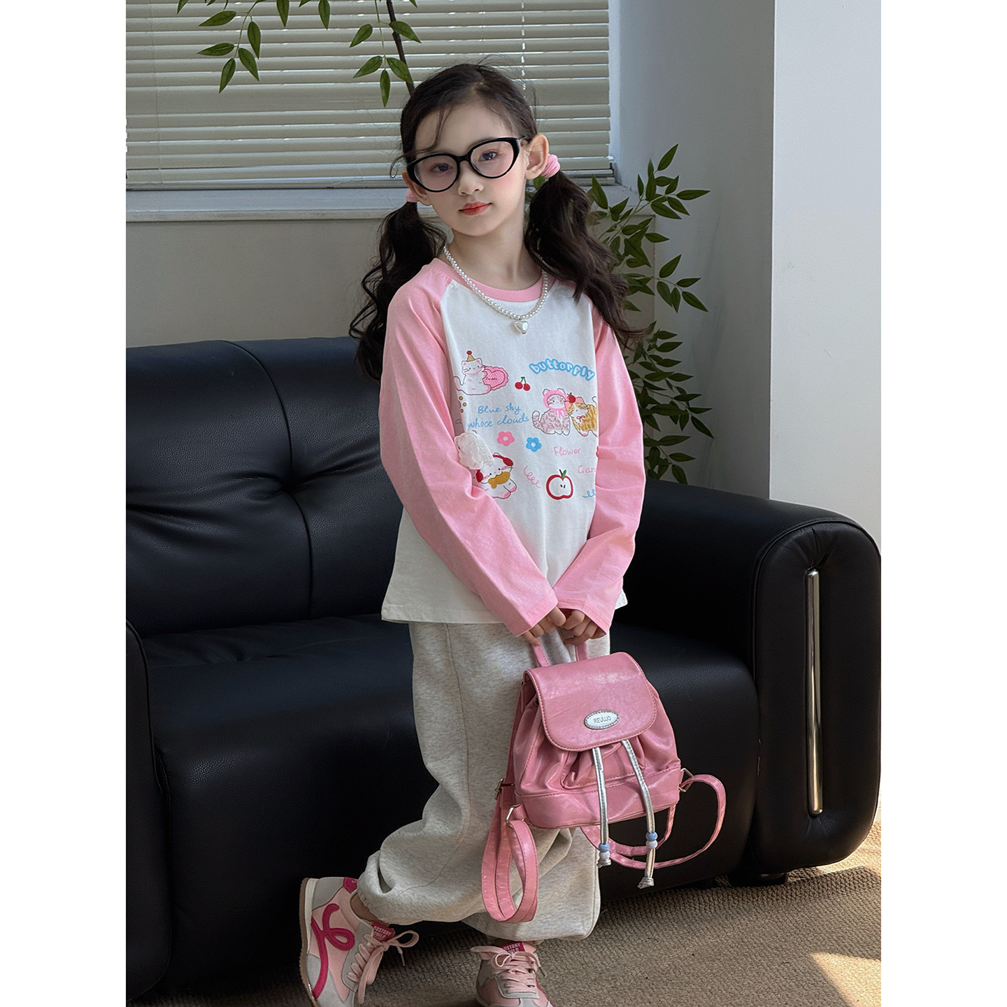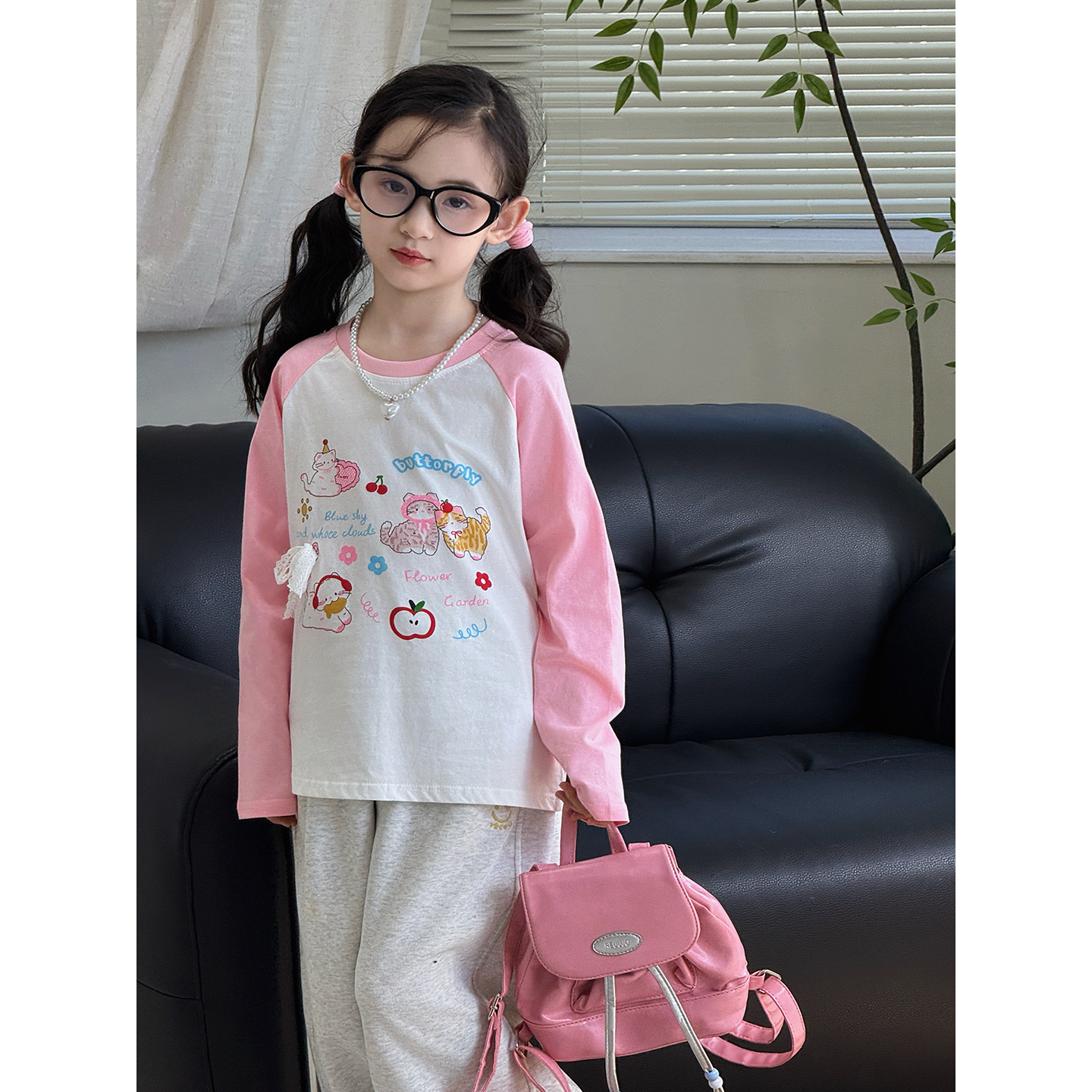 女童长袖T恤2025秋季新款儿童韩版插肩袖上衣卡通中大童打底衫潮