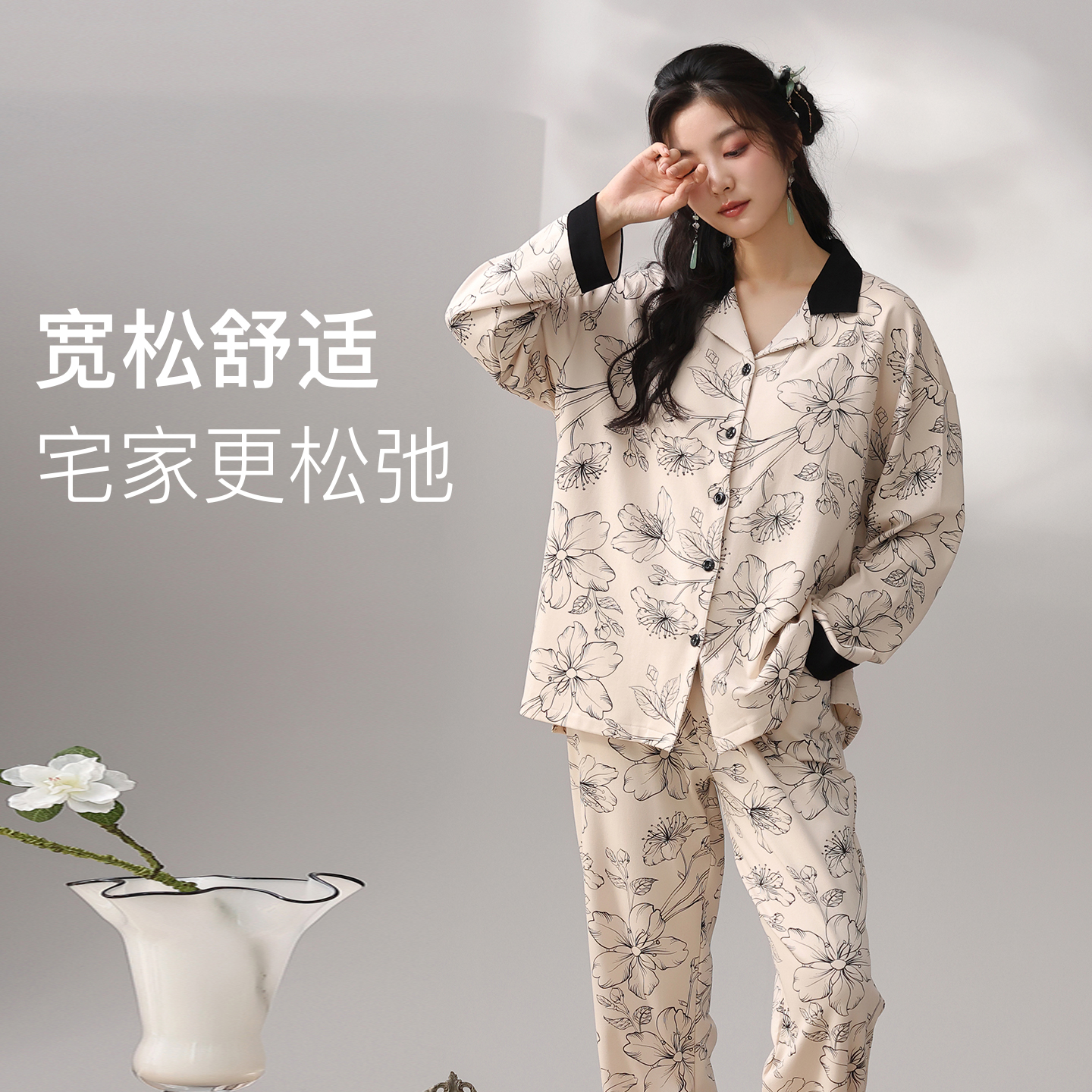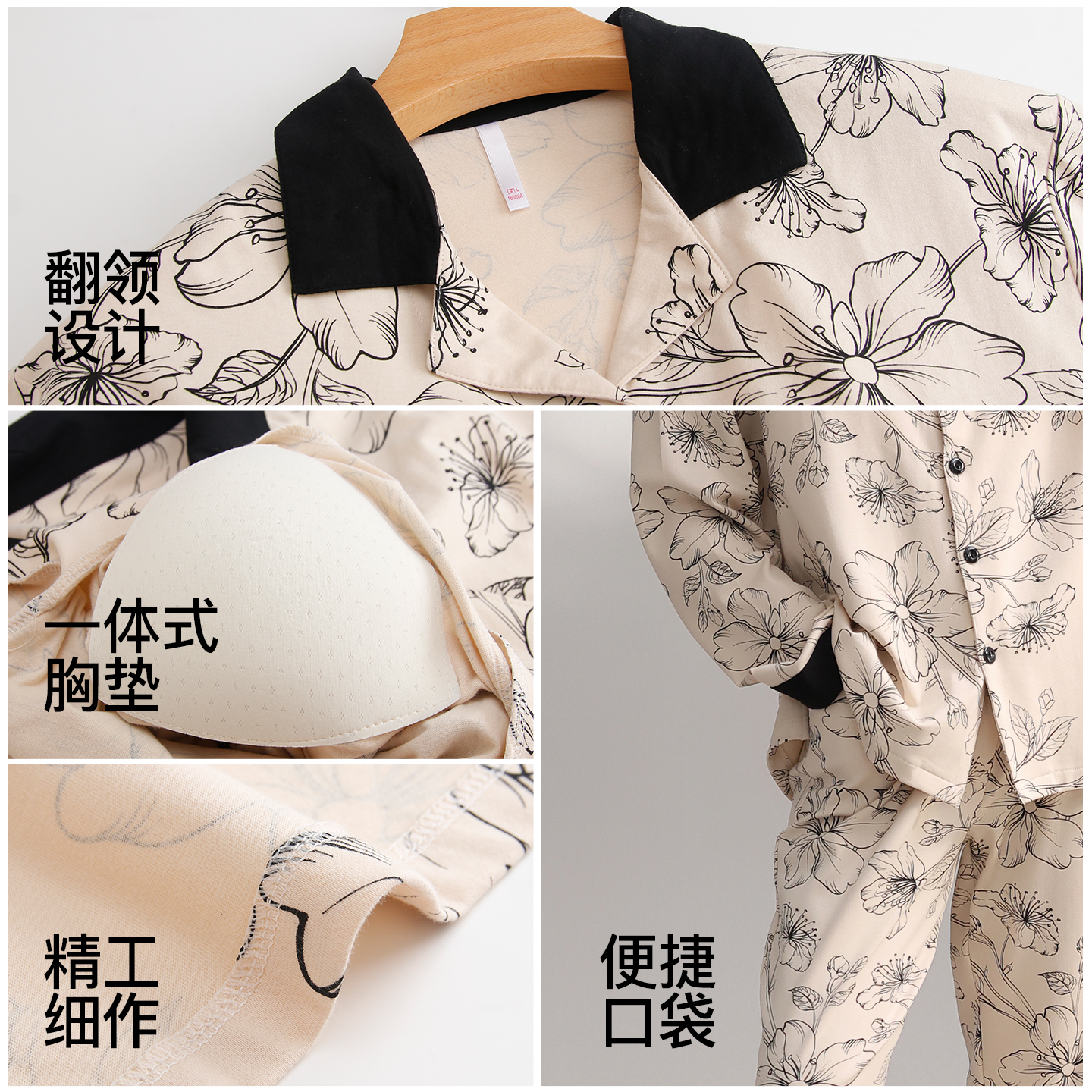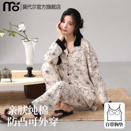 带胸垫睡衣女士纯棉可外穿家居服