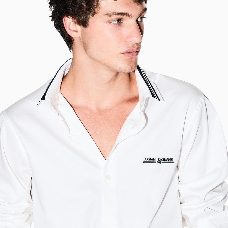 ARMANI EXCHANGE/阿玛尼秋冬新款男士美式纯棉长袖外套衬衫白上衣
