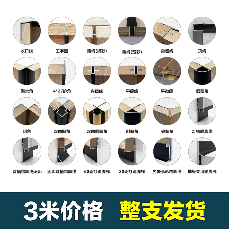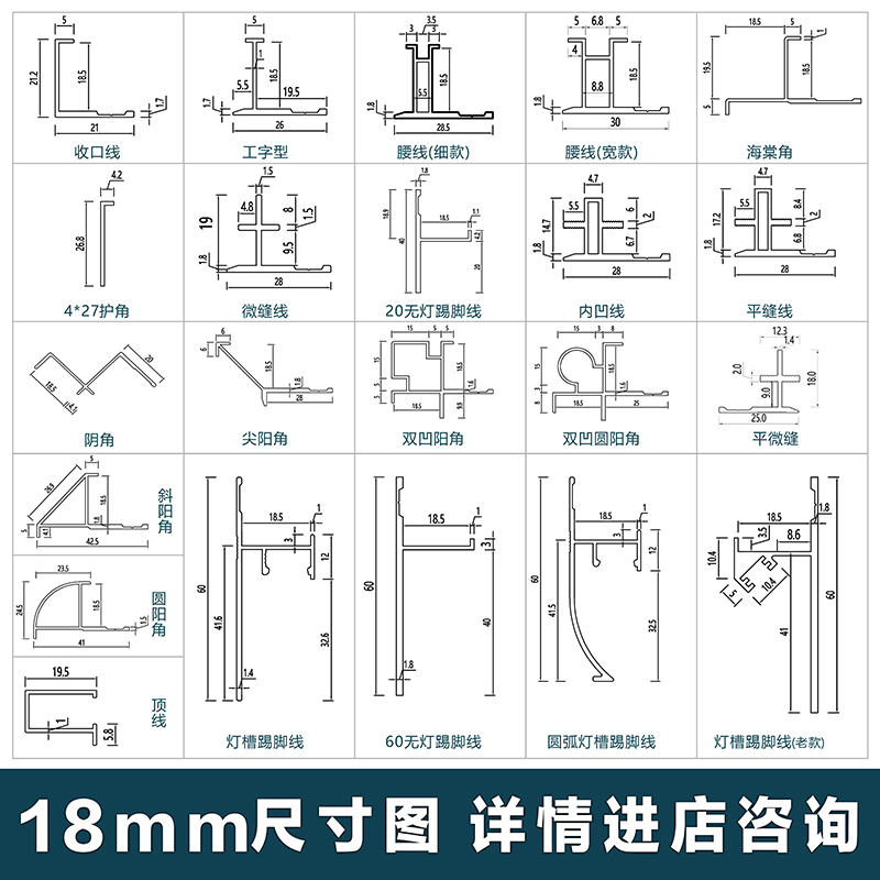 18mm护墙板收边条铝合金收口条型材饰面板卡条装饰条金属腰线工字