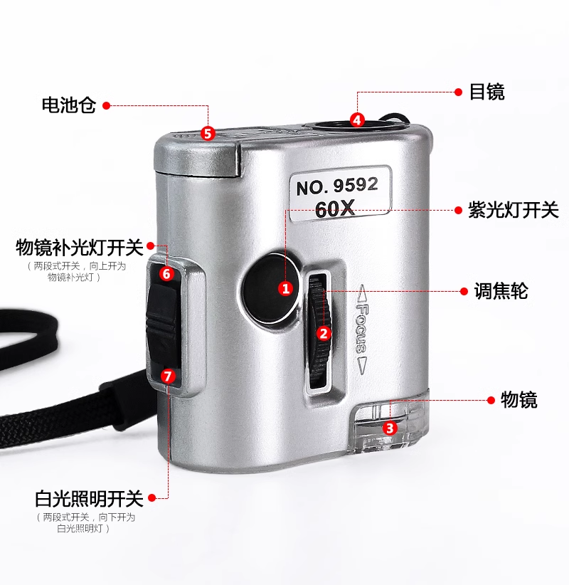便携式高清60倍放大镜带LED灯显微镜集邮珠宝茶叶烟邮票鉴定验钞