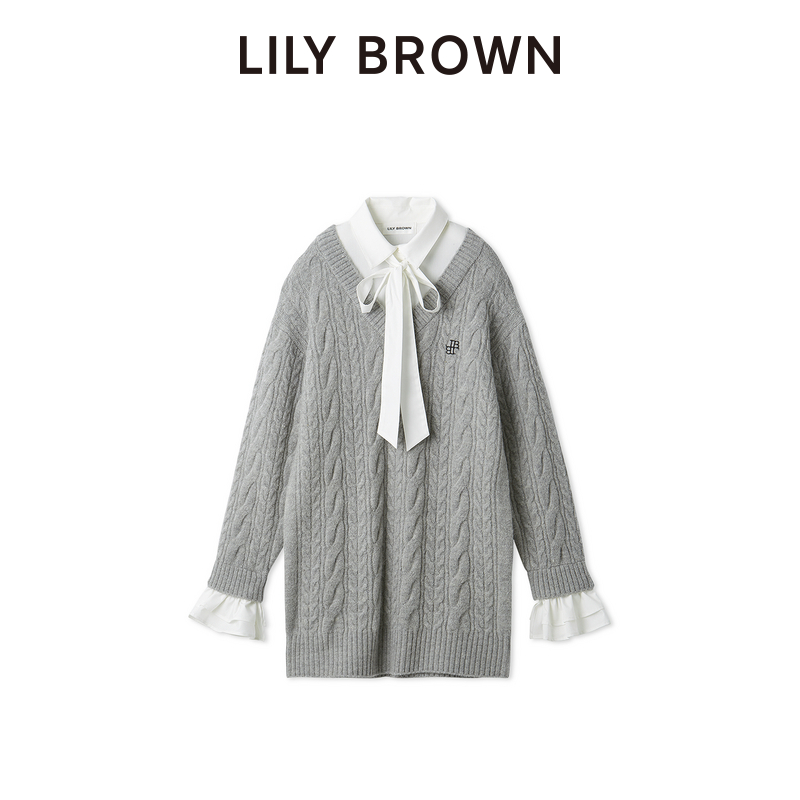 LILY BROWN2025秋冬新品蝴蝶结系带衬衫拼接针织连衣裙LWNO254226