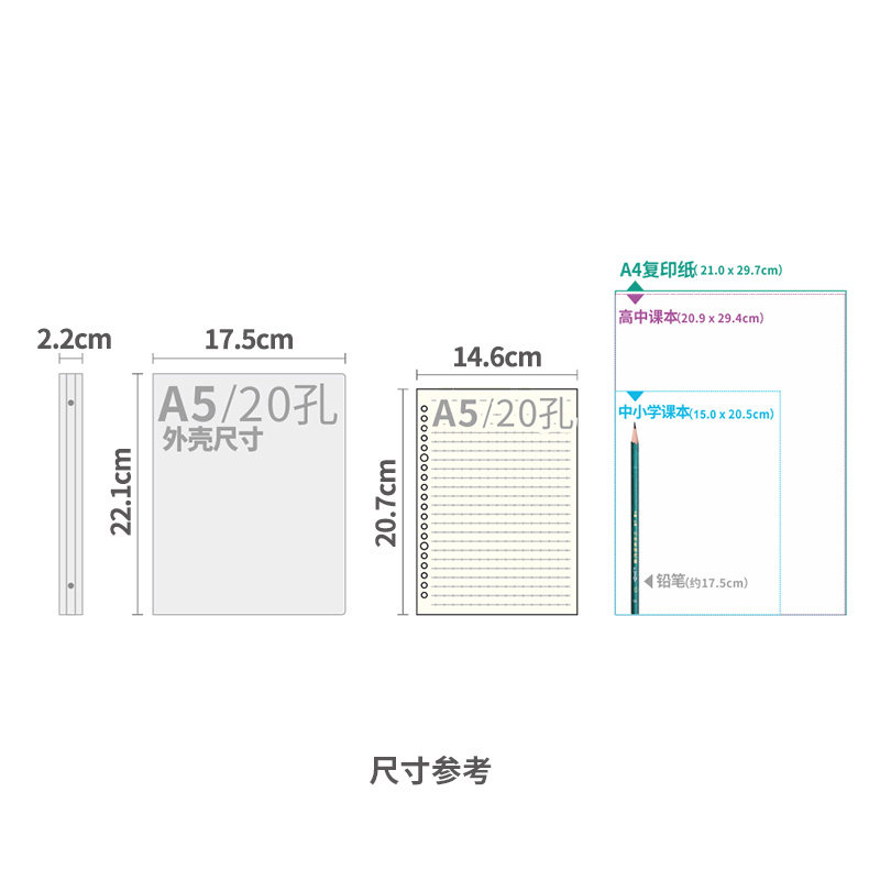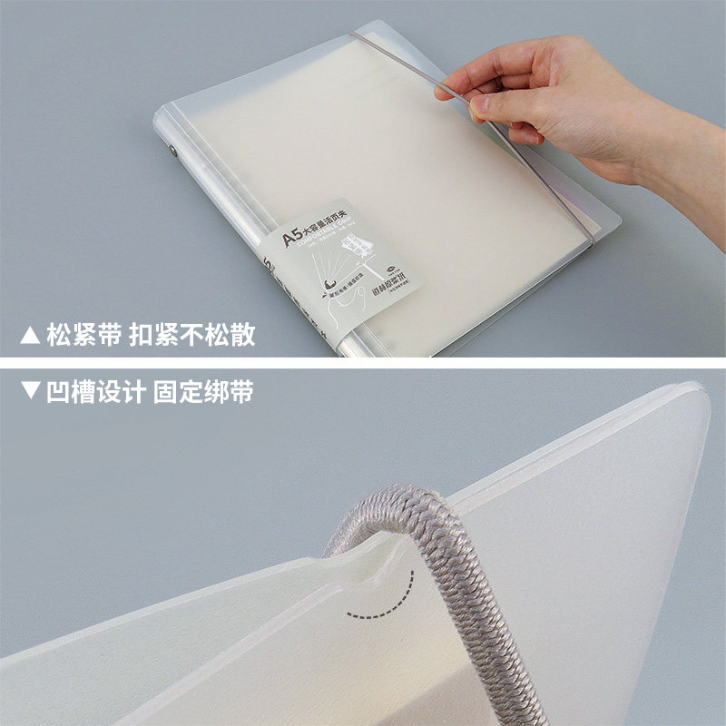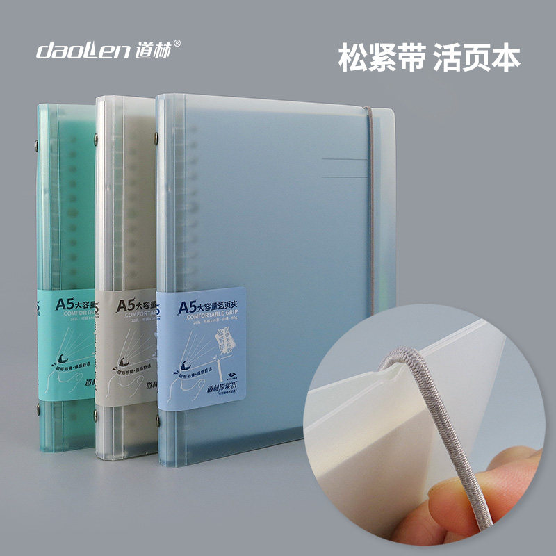 道林活页本绑带20孔固力夹a5塑料圆弧形外壳松紧带简约INS中小风学生笔记本可拆替换米黄纸旅行记录考研本子