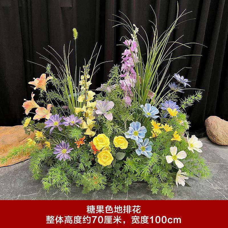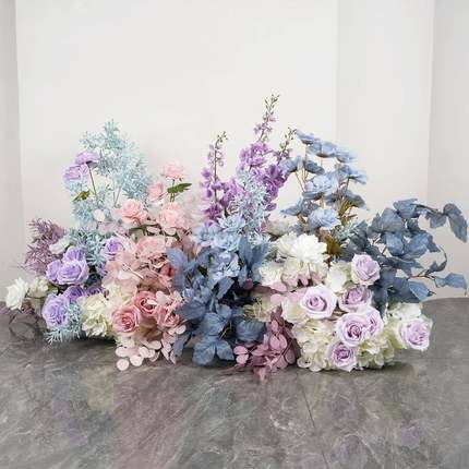 婚庆大款地排花成品花排T台路引婚礼花艺蓝色仿真玫瑰花