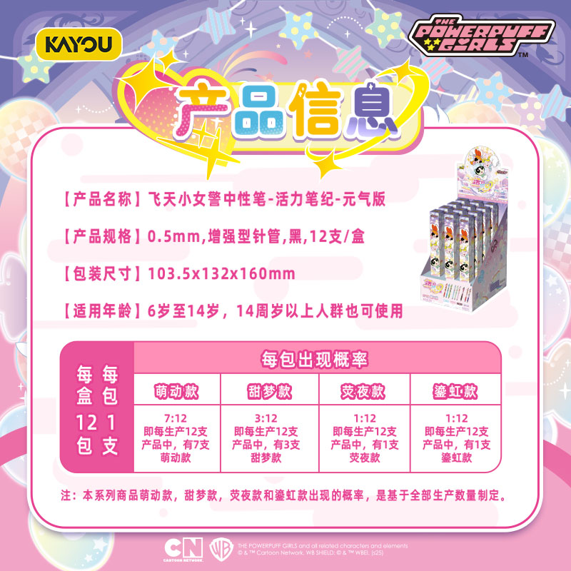 卡游文具 飞天小女警中性笔盲盒笔活力笔纪元气版高颜值按动黑色签字笔儿童可爱黑笔水笔小学生专用学习用品