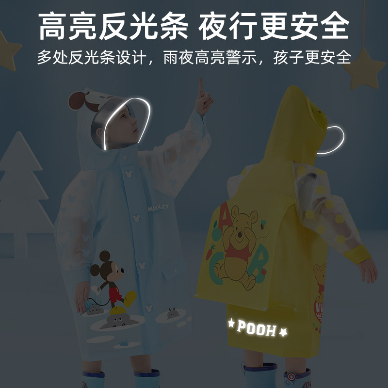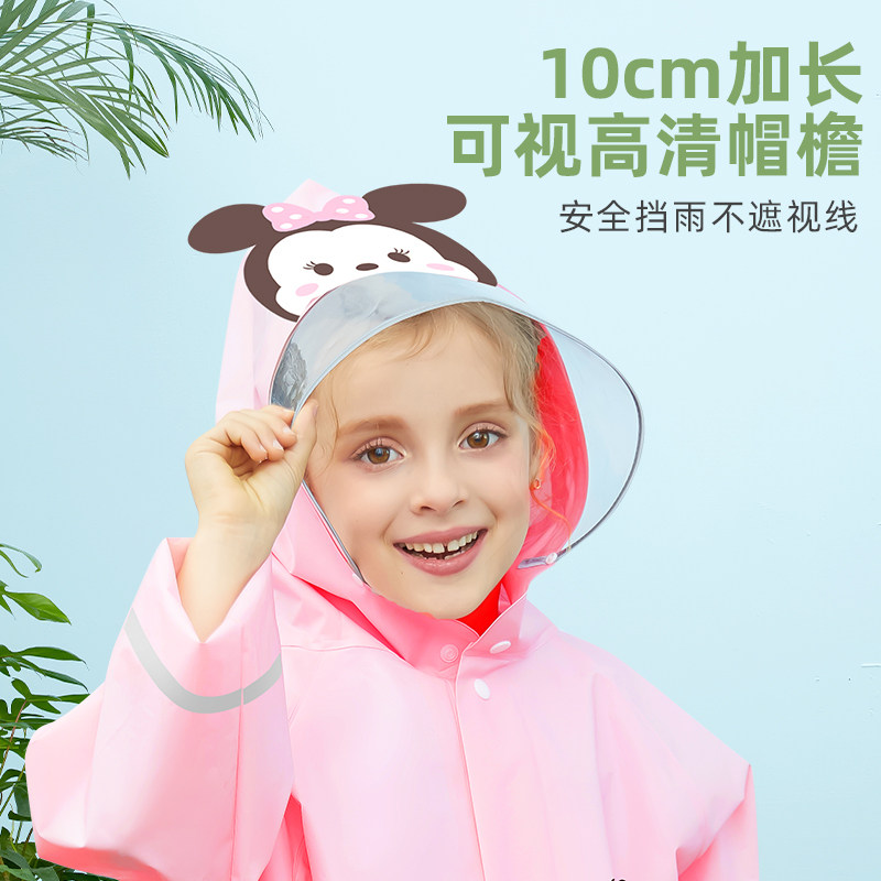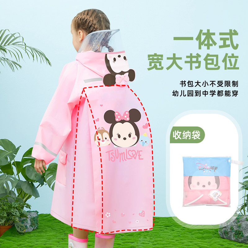 迪士尼儿童雨衣男女童小学生幼儿园宝宝小孩带书包位防水上学雨披
