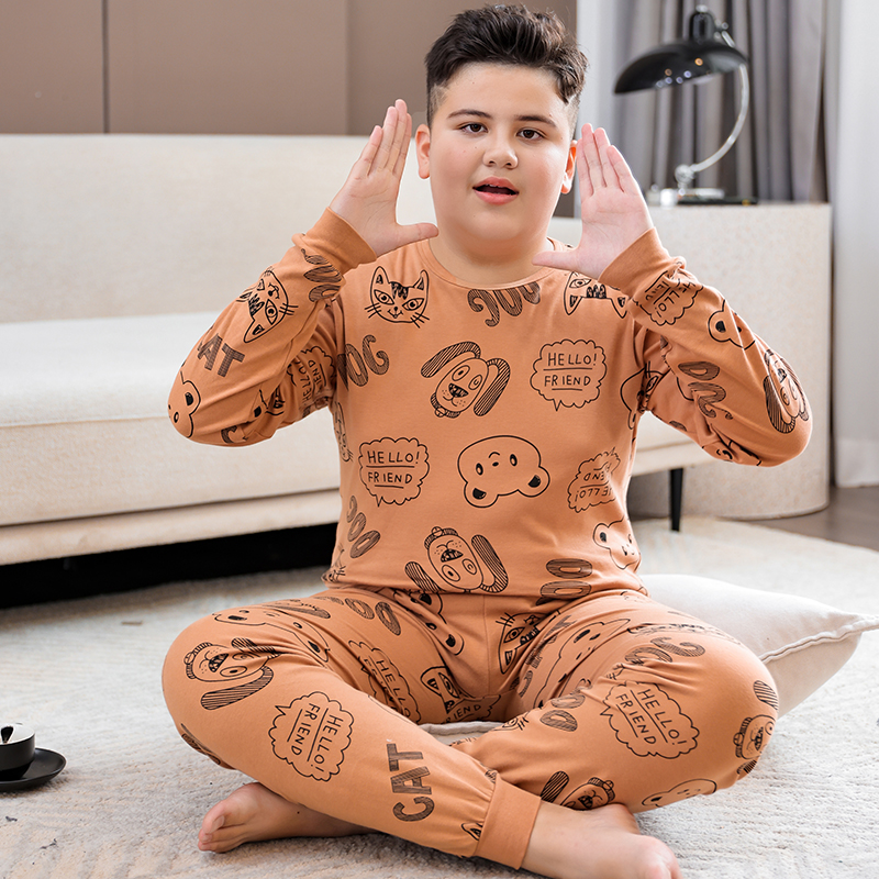 加肥加大春秋保暖男大童睡衣胖童秋衣秋裤内衣套装儿童打底纯棉