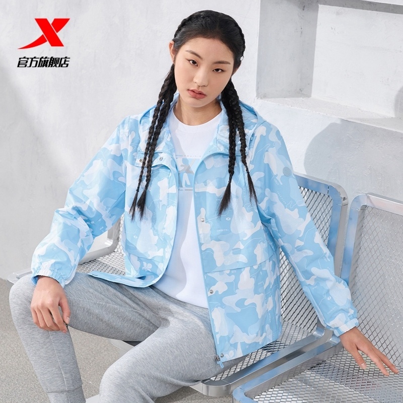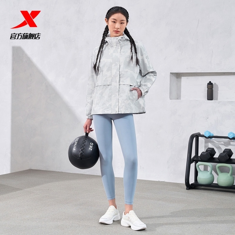 特步双层风衣女士2025新款春秋训练跑步连帽运动外套976128150168