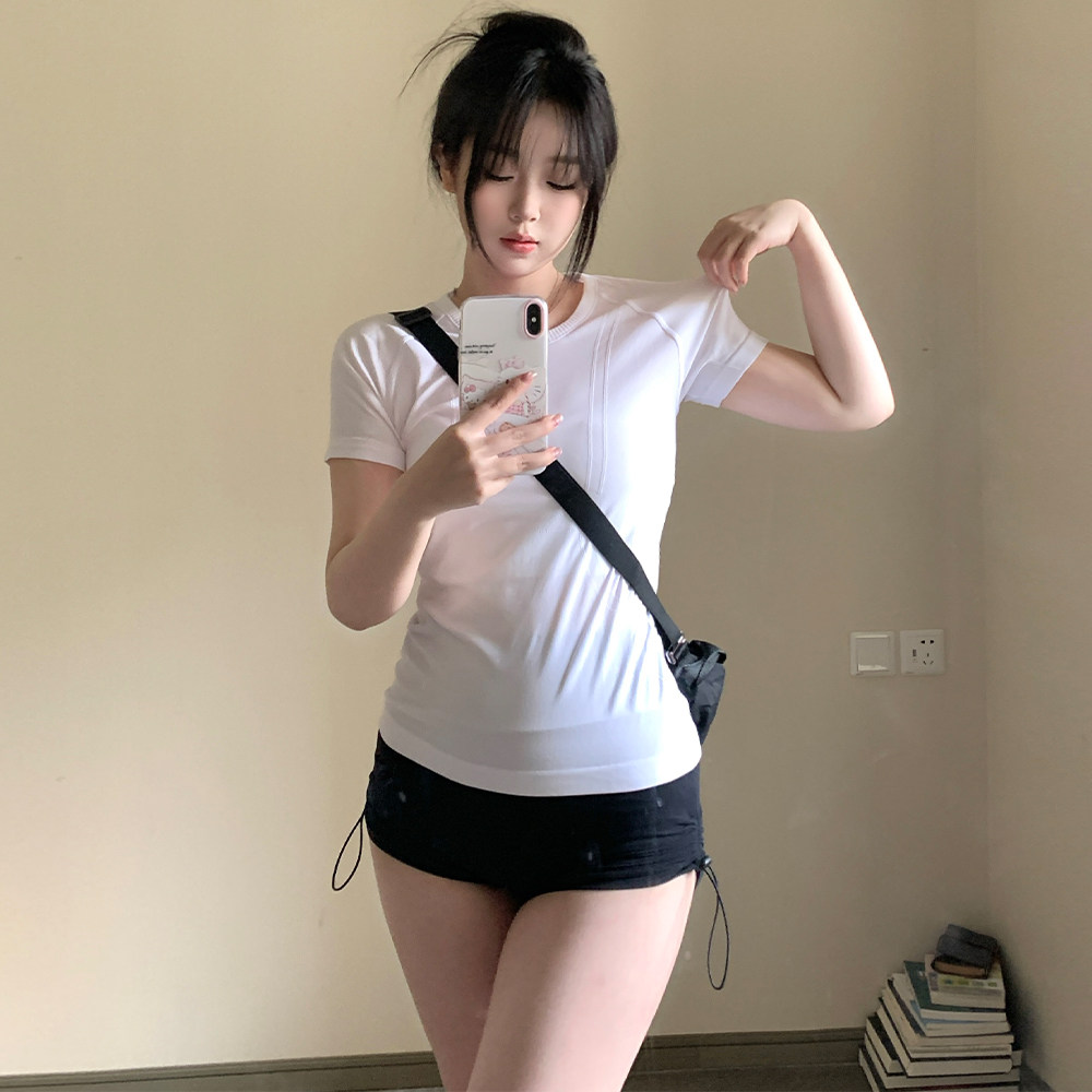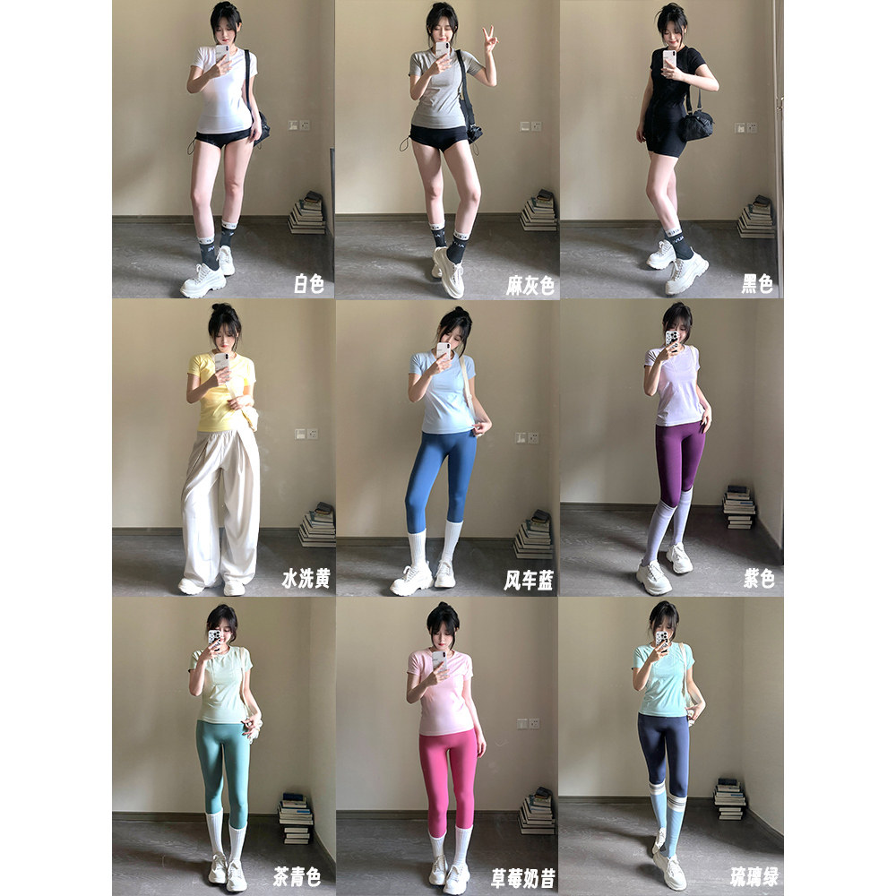高弹力瑜伽服女短袖春夏款无缝速干T恤透气修身跑步健身户外训练