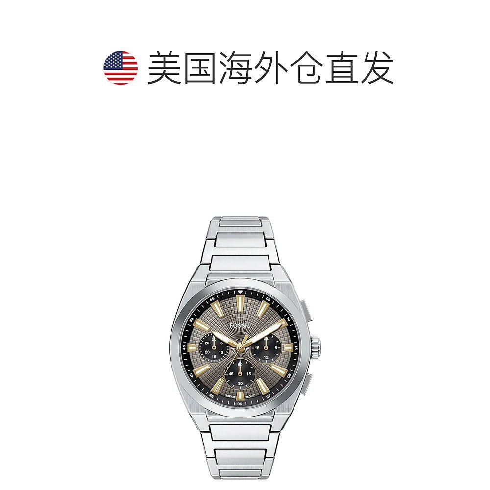 自营Fossil男士埃弗雷特灰色表盘手表-灰色 美国奥莱直发化石