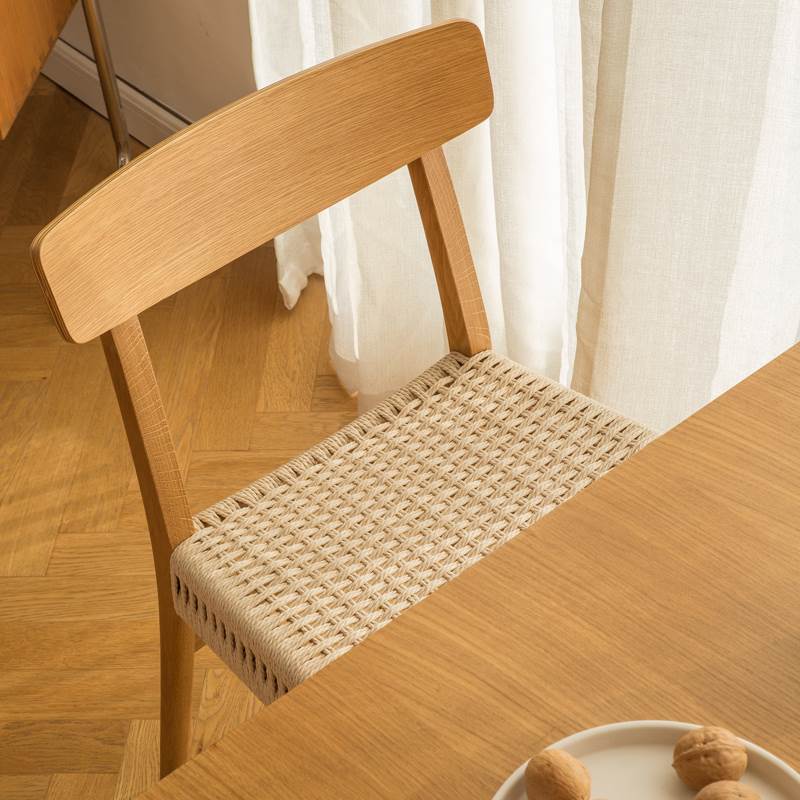 实木日式绳编餐椅靠背餐桌椅子