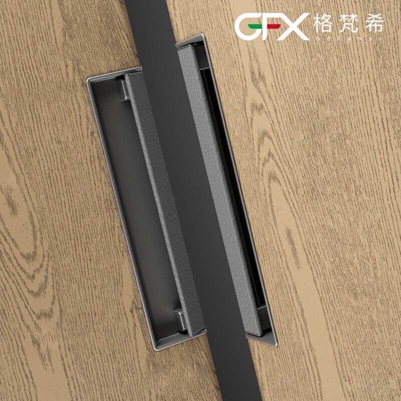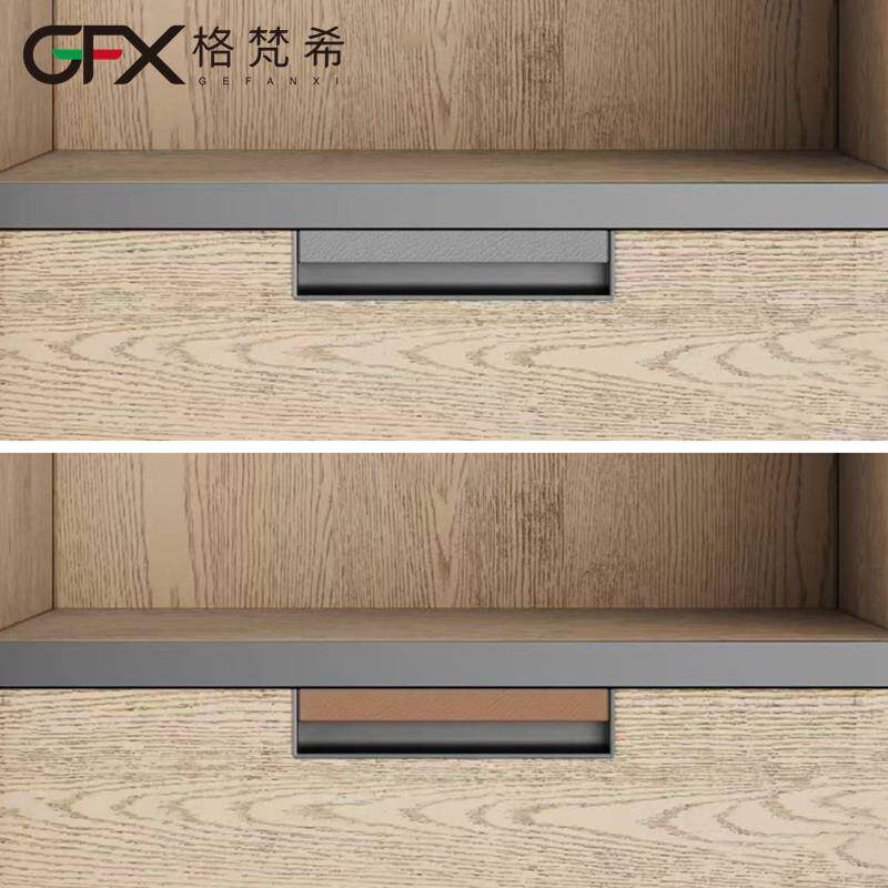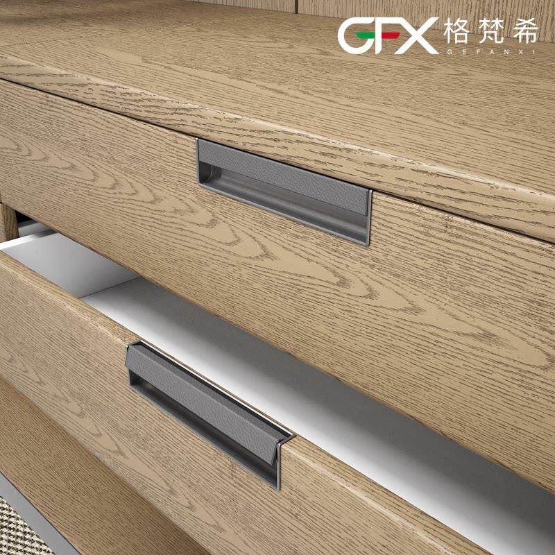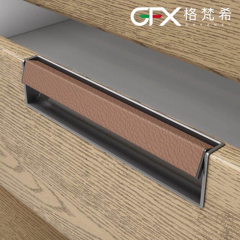 新款暗扣意式灰色皮革拉手衣帽间抽屉嵌入式把手大衣柜轻奢拉手棕