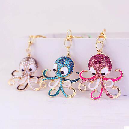 可爱饰品合金水钻小章鱼汽车钥匙扣八爪鱼海洋动物挂件钥匙链1194