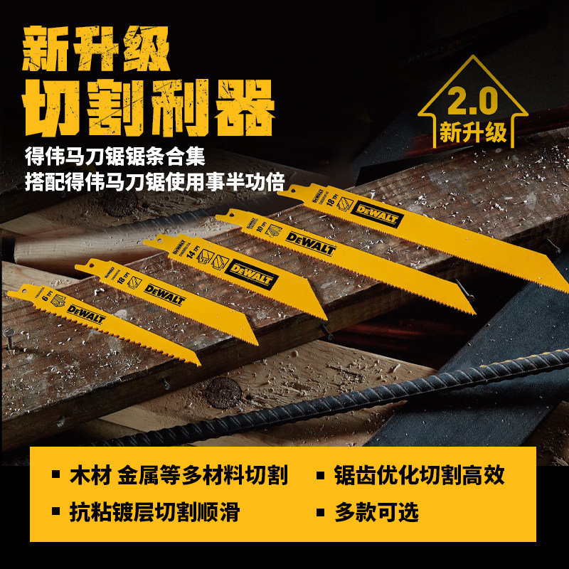 DEWALT得伟马刀锯条金属木材电缆PVC塑料切割往复锯锯条木工锯片