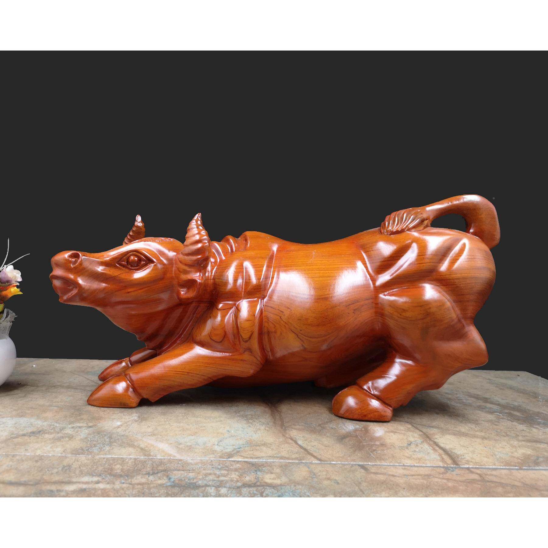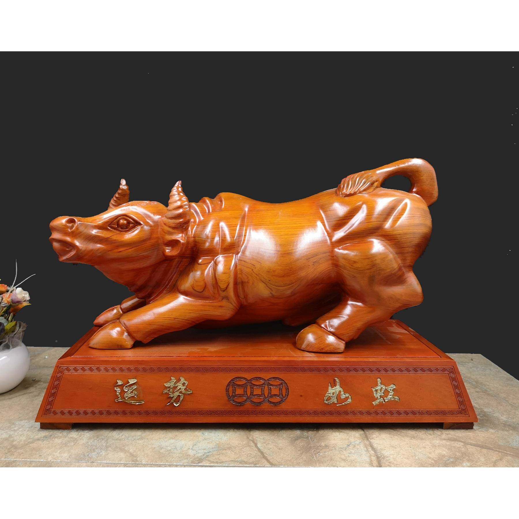 运如12生肖动物牛RPA摆件尔华势街股市抬头牛木雕工艺礼虹品