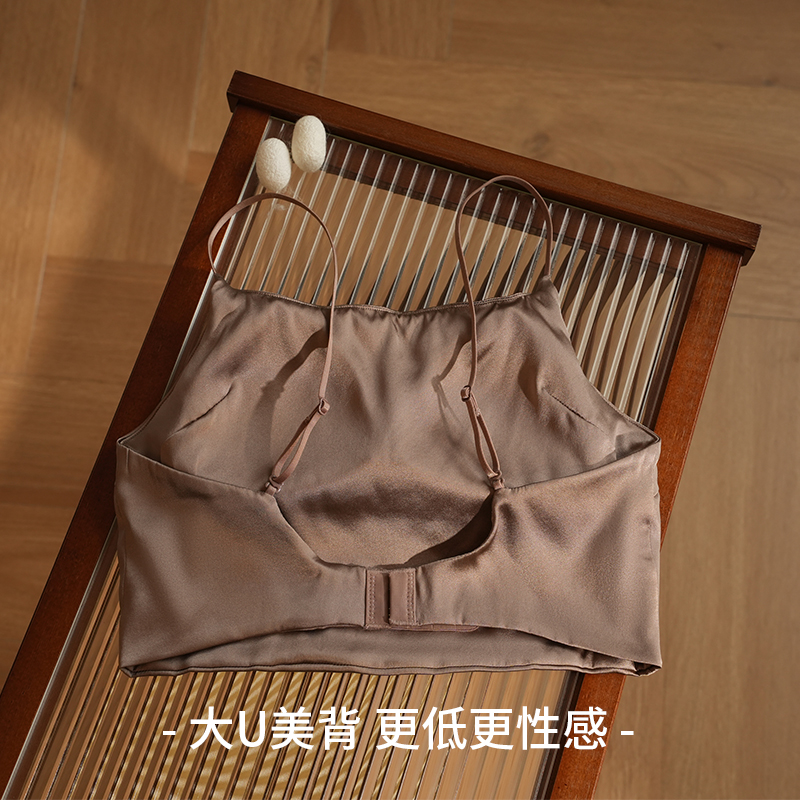 真丝吊带文胸带胸垫薄款抹胸式防走光内搭桑蚕丝美背内衣女
