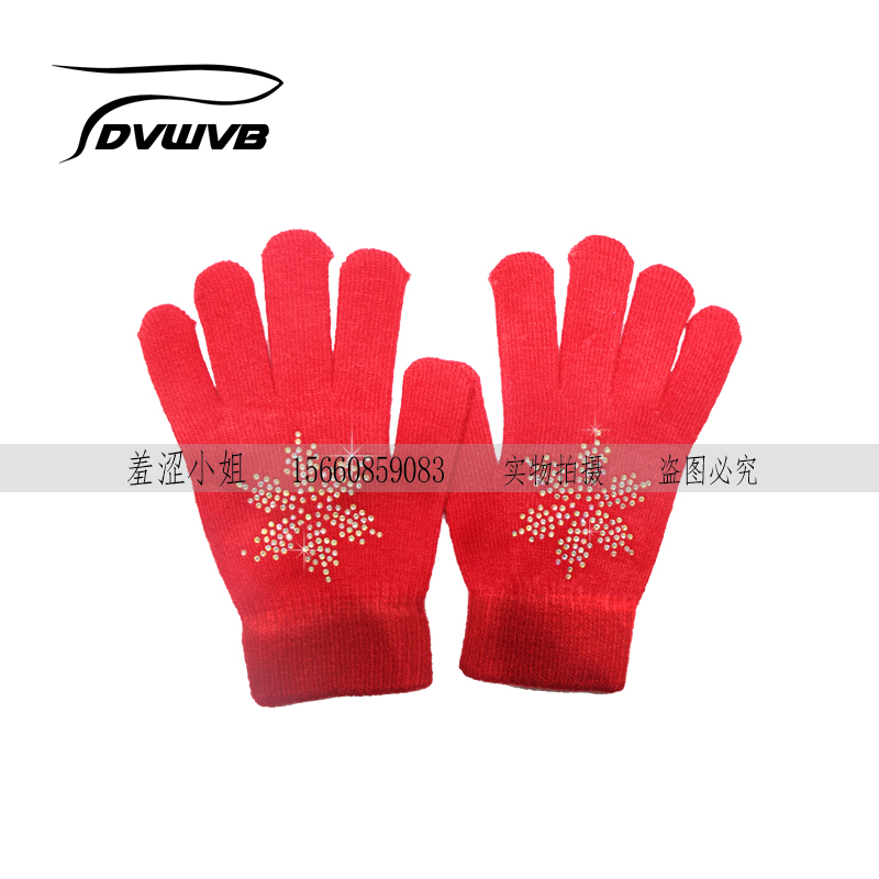 羞涩小姐 花样滑冰毛线手套 多色烫钻系列 保暖好