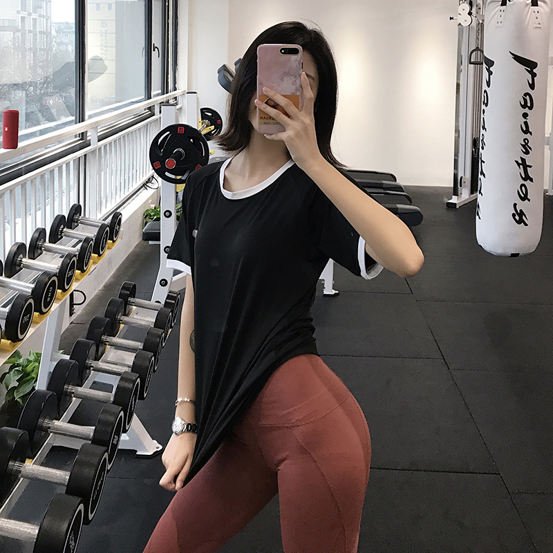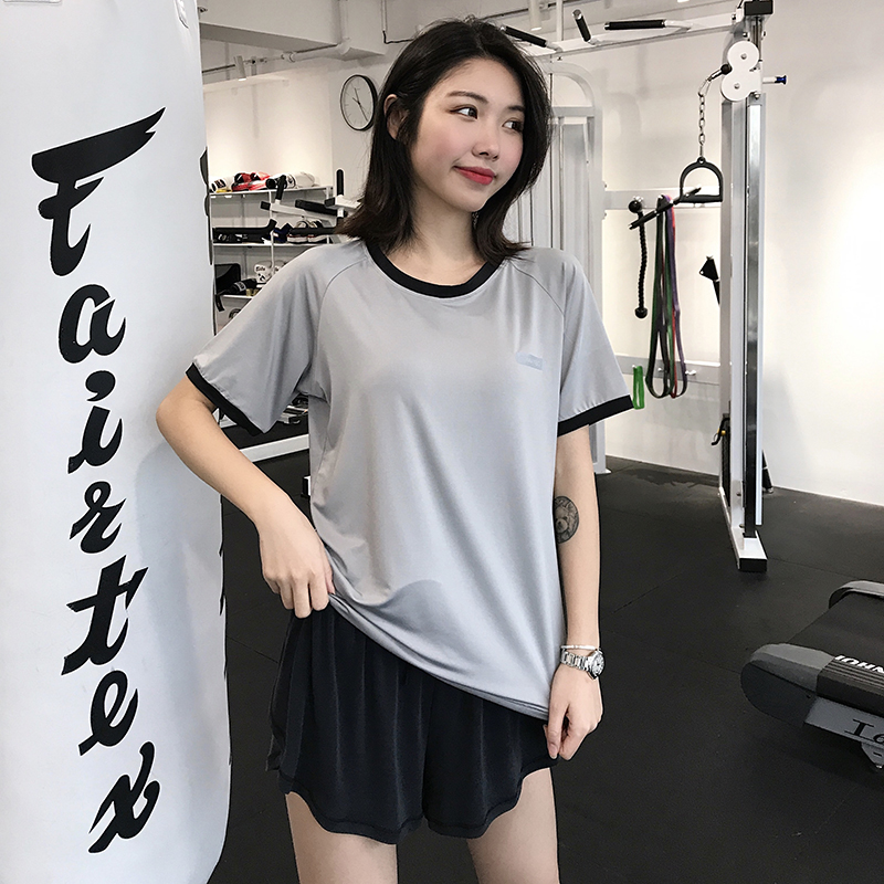 annerun运动短袖女宽松跑步速干T恤健身罩衫半袖训练体恤瑜伽上衣