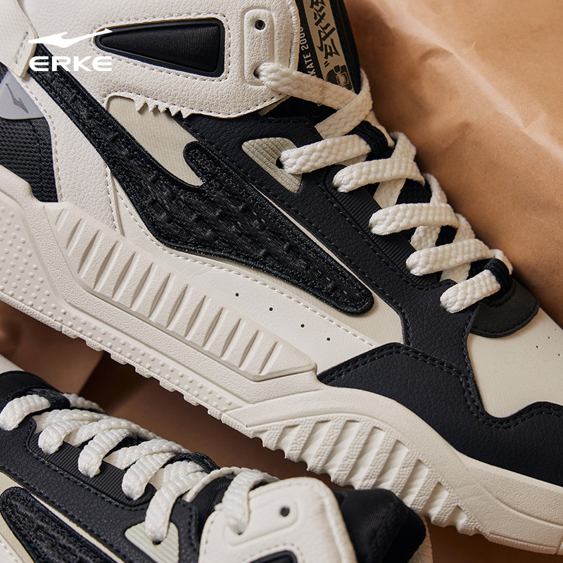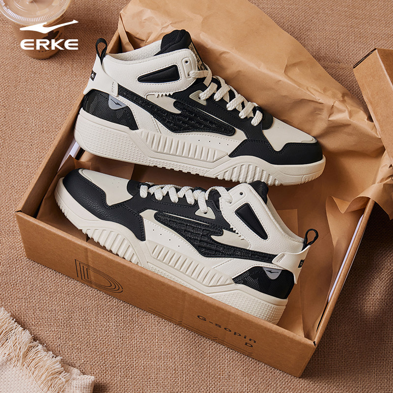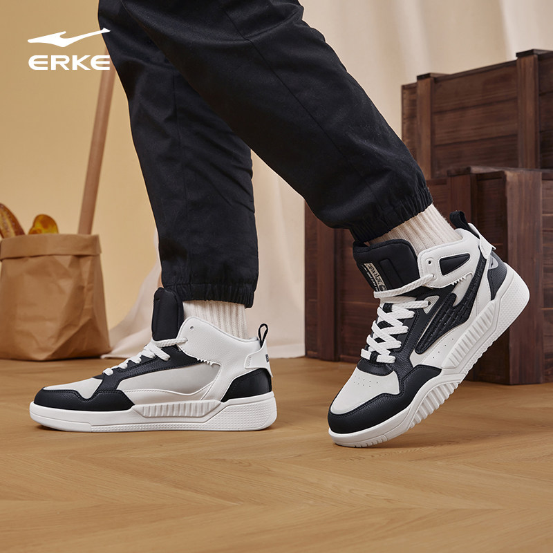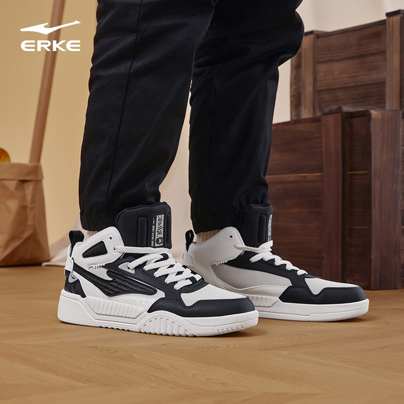 征服2.0鸿星尔克男鞋高帮板鞋春秋季新款厚底休闲男士运动鞋子男