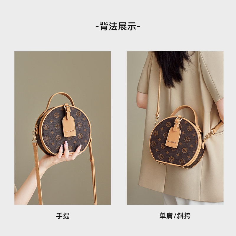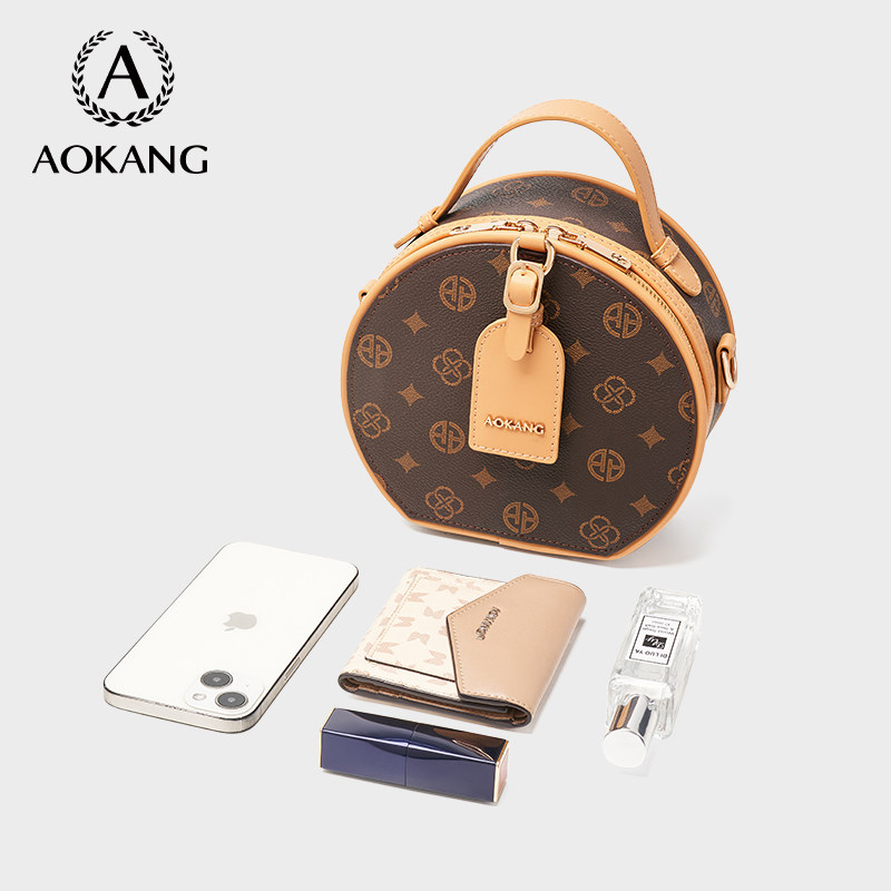 奥康小圆包女式2026新款老花手提女包大容量单肩包轻奢小众斜挎包