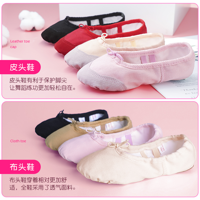 舞蹈鞋儿童女软底练功鞋女童红色跳舞成人男形体中国民族芭蕾舞鞋