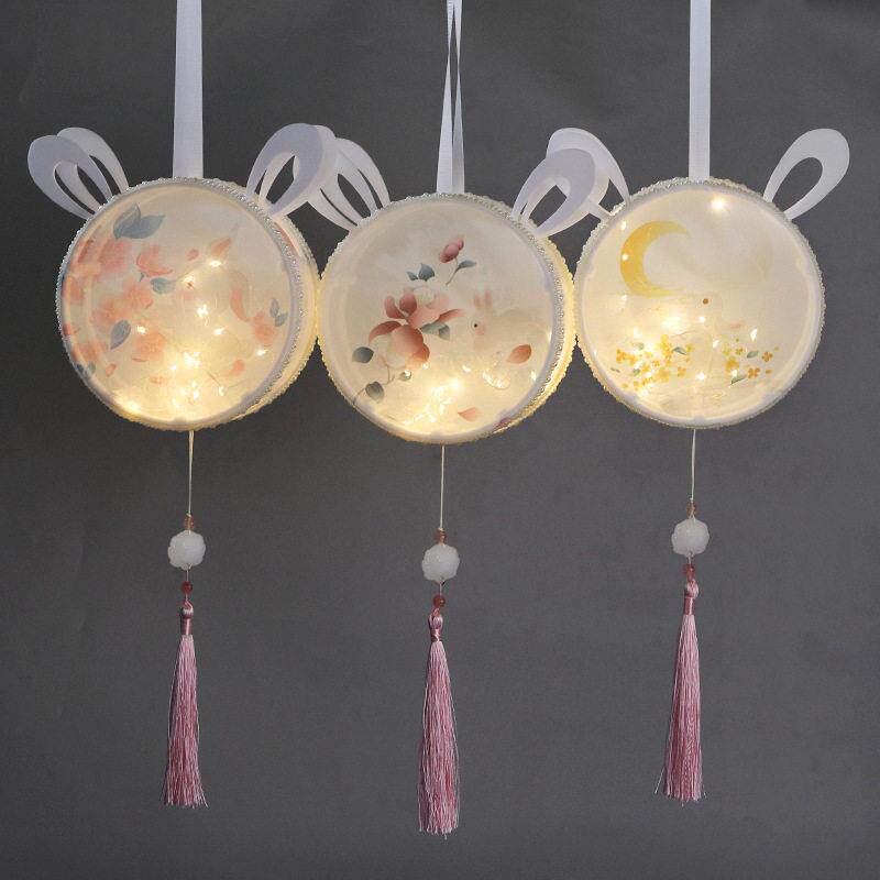 中秋节发光灯笼兔耳 汉服拍照道具手持灯 古风手提花灯儿童兔子灯