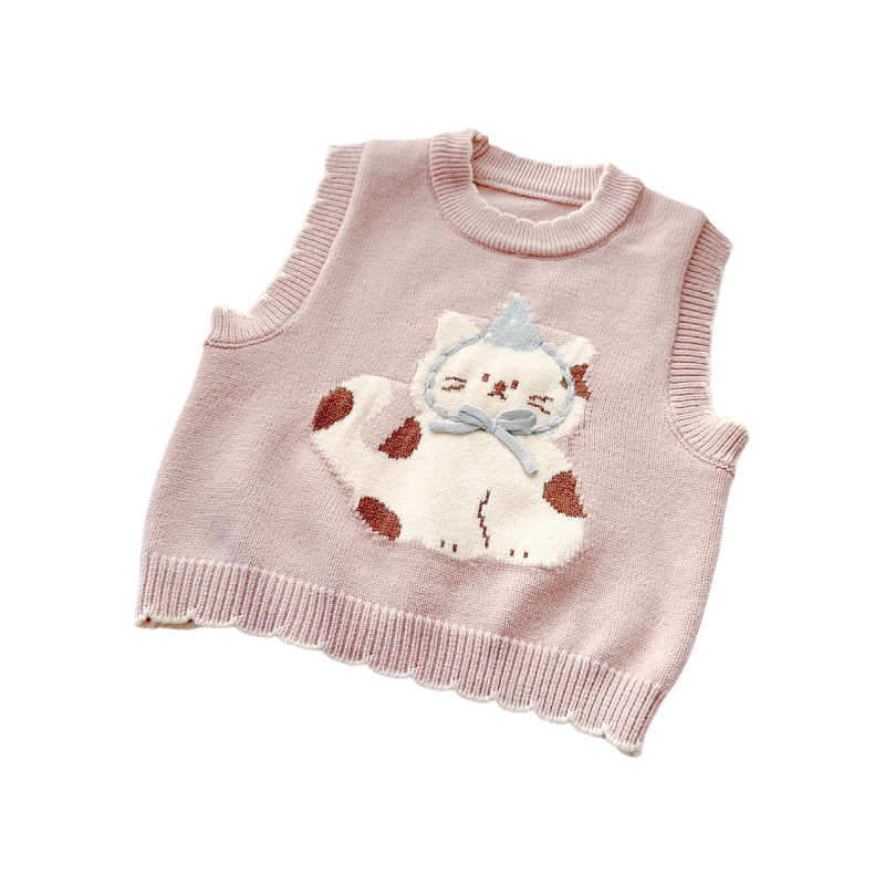 女童毛衣马甲春秋季2025新款儿童洋气卡通宝宝线衫宽松针织衫上衣