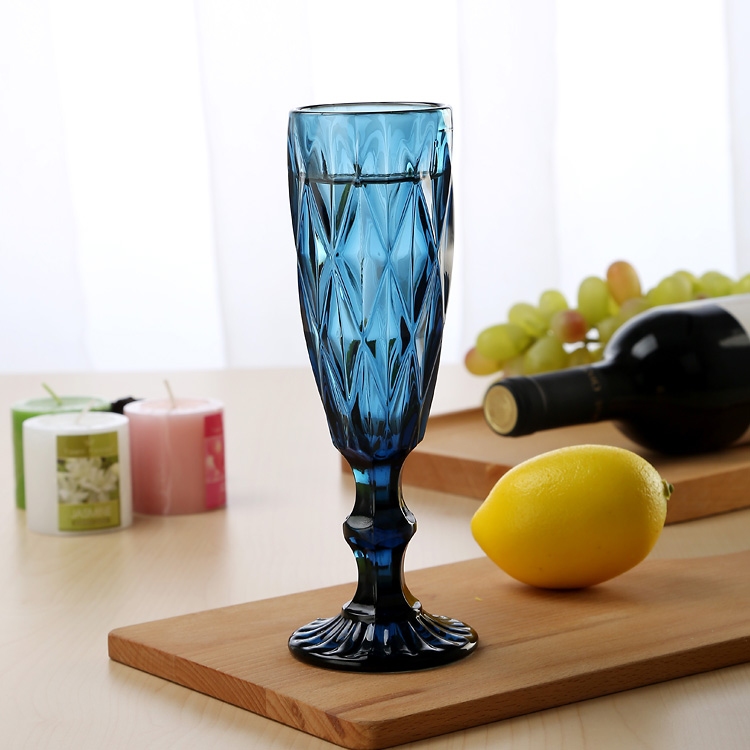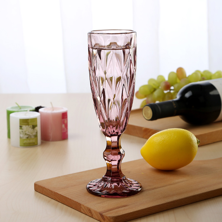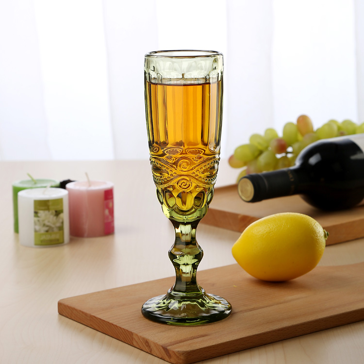 复古彩色浮雕香槟杯高脚杯创意小号果汁杯酒杯玻璃杯