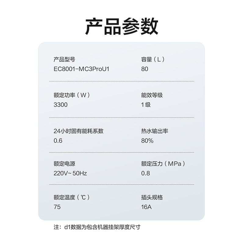 Haier/海尔EC8001-MC3ProU1 80升一级能效3.3kw速热电热水器家用