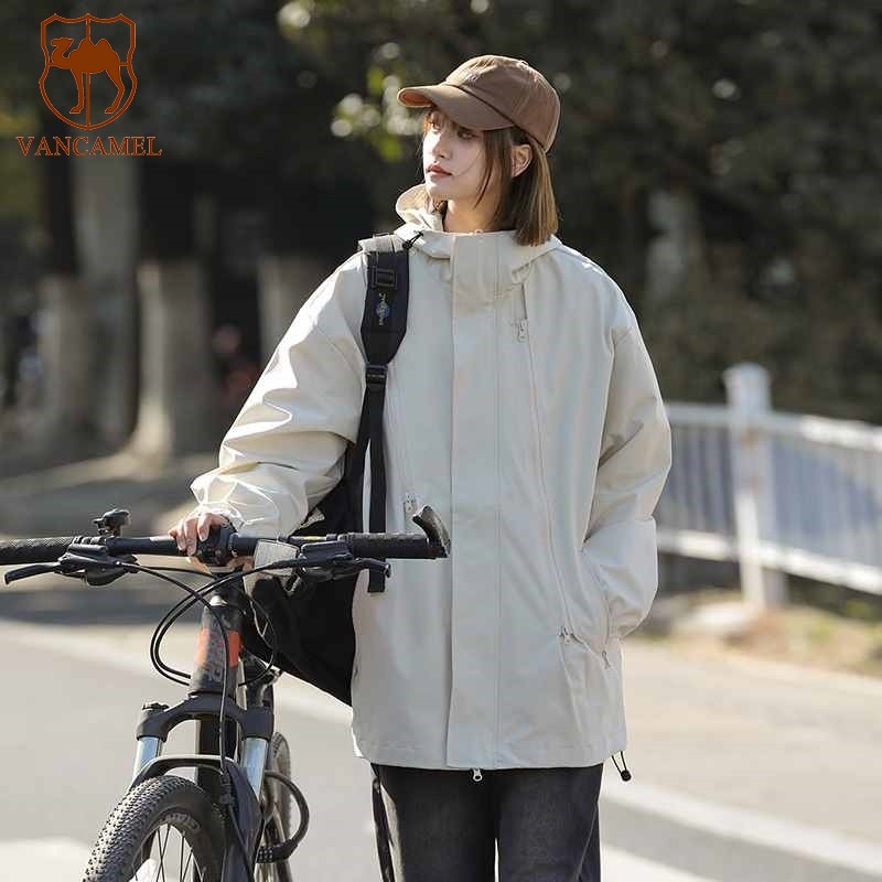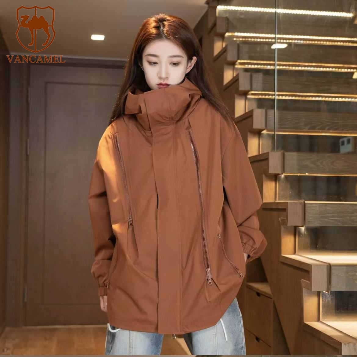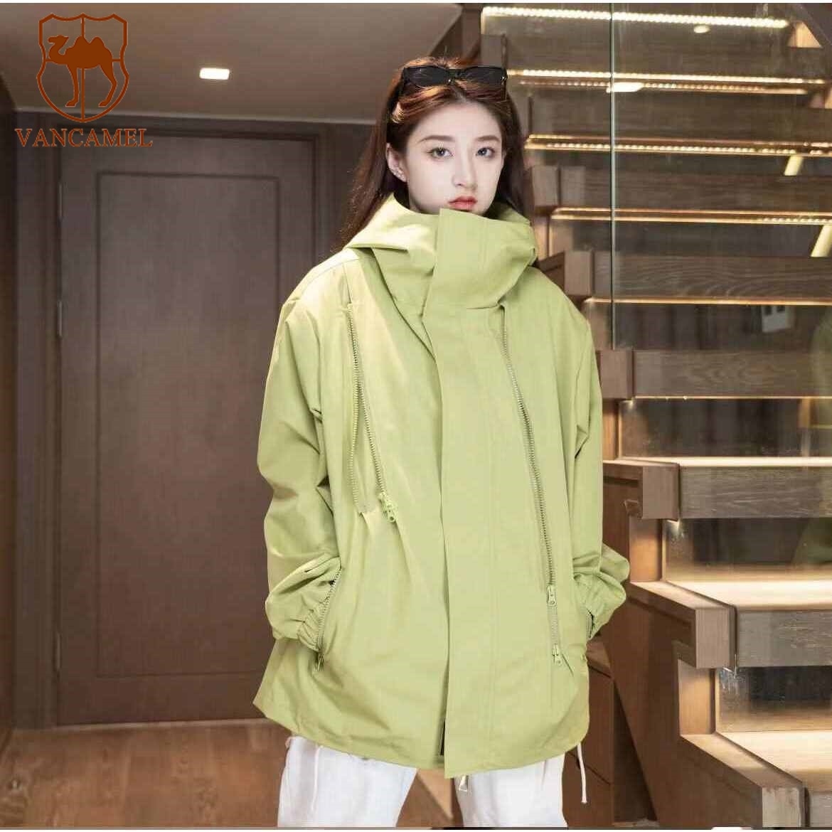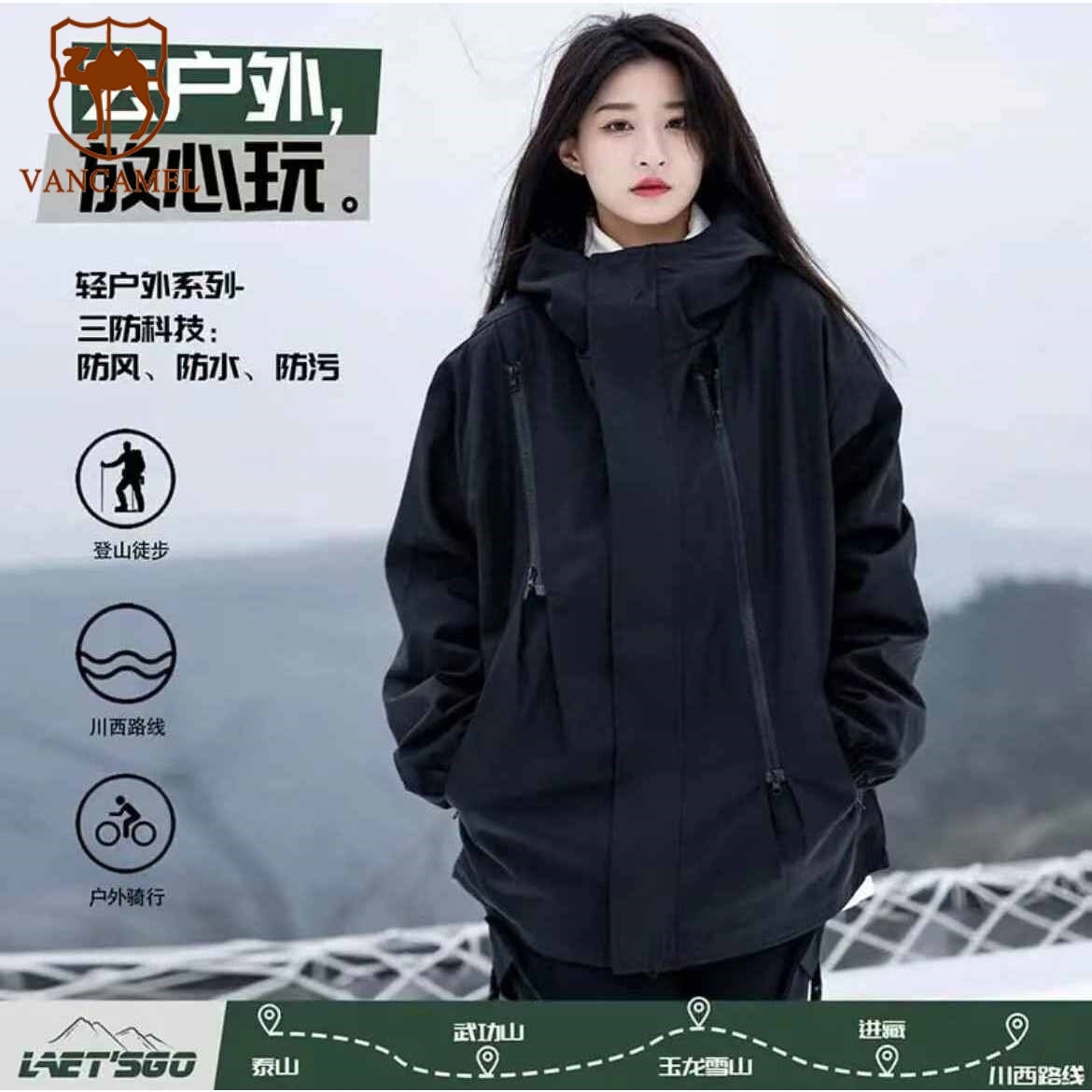 西域骆驼2024连帽男春秋登山服户外冲锋衣外套新款机能风工装情侣