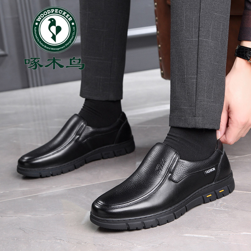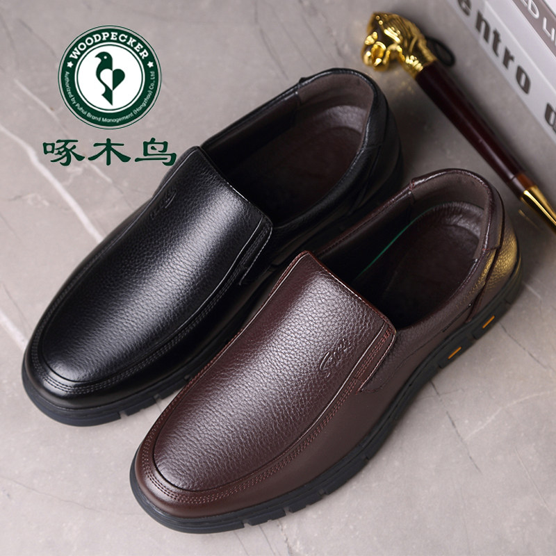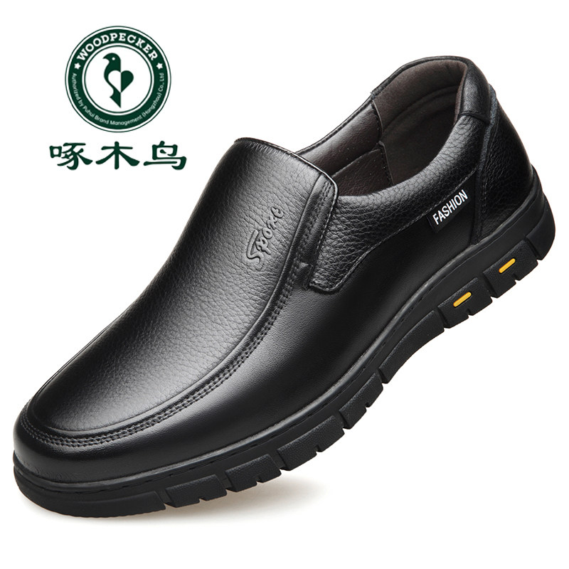 啄木鸟男鞋真皮软底加绒加厚保暖休闲皮鞋男防滑中老年爸爸大码鞋