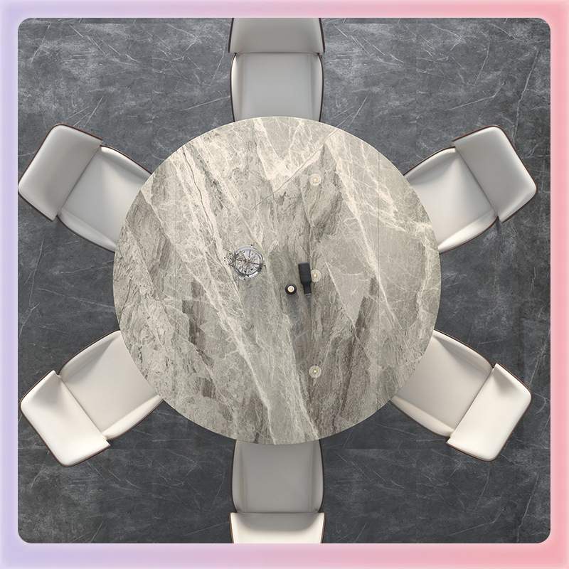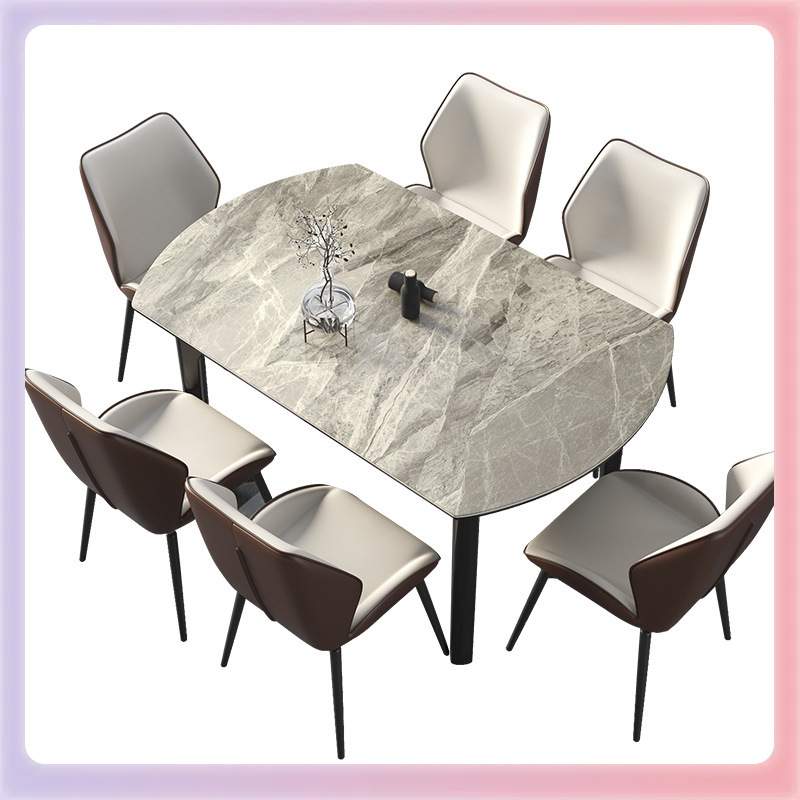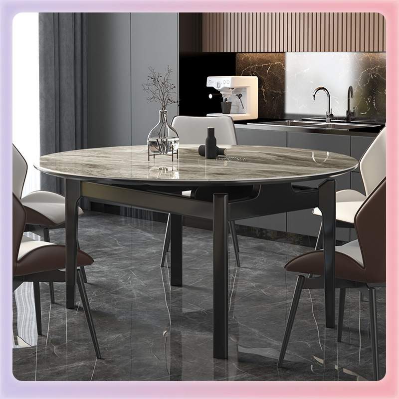 A4L轻奢岩板餐桌椅组合吃饭家用小户型长方形可变圆桌现代简约