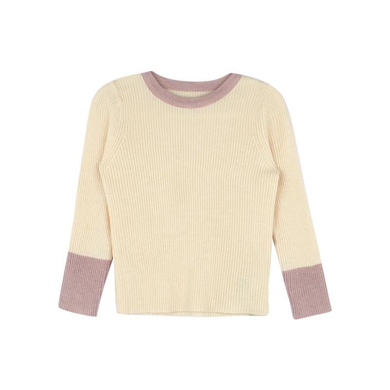 utouto大耳象女童拼色打底毛衣2025秋季新款宝儿针织弹力百搭上衣