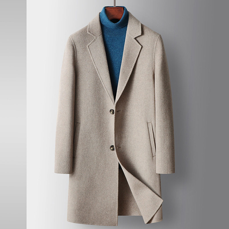 手工双面呢男式大衣2025秋冬中长款青年轻奢商务羊毛风衣外套