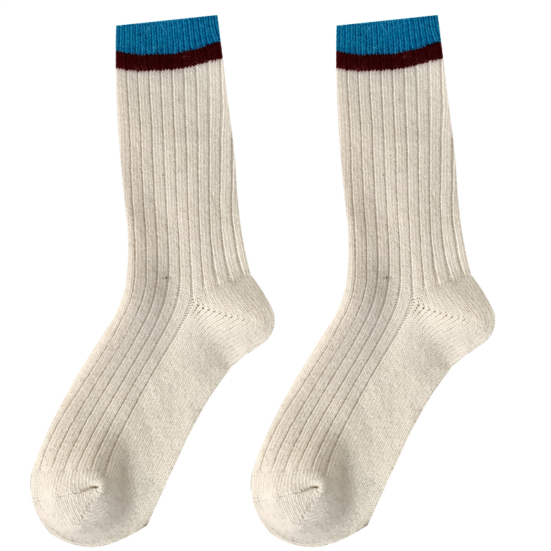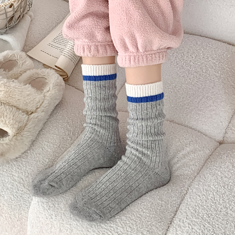 撞色袜子女中筒袜秋冬加厚保暖日系横条拼色羊毛袜配雪地靴堆堆袜