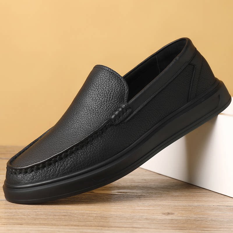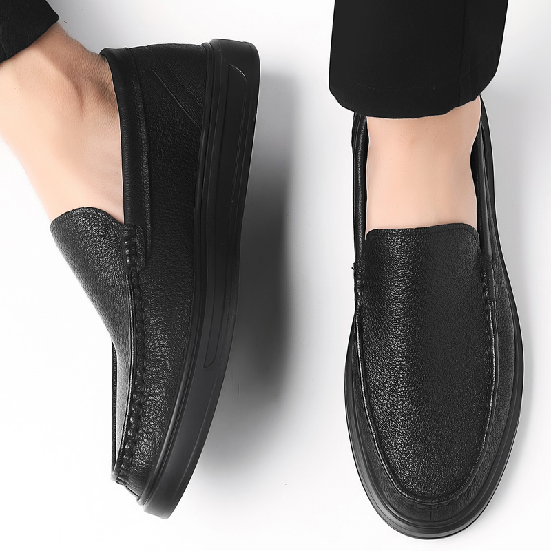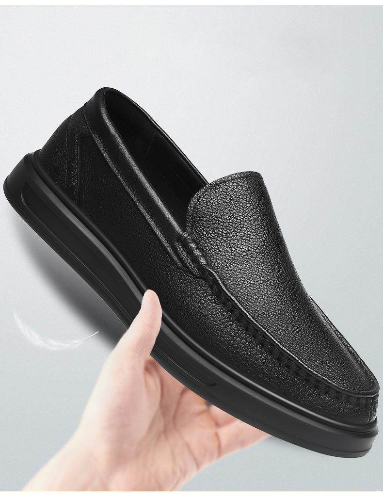 春秋新款男士套脚牛皮鞋休闲百搭一脚蹬户外软底软面驾车鞋潮鞋