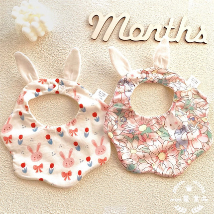 韩版ins风纯棉布棉纱婴儿口水巾宝宝围嘴兔耳朵花瓣围兜防吐奶