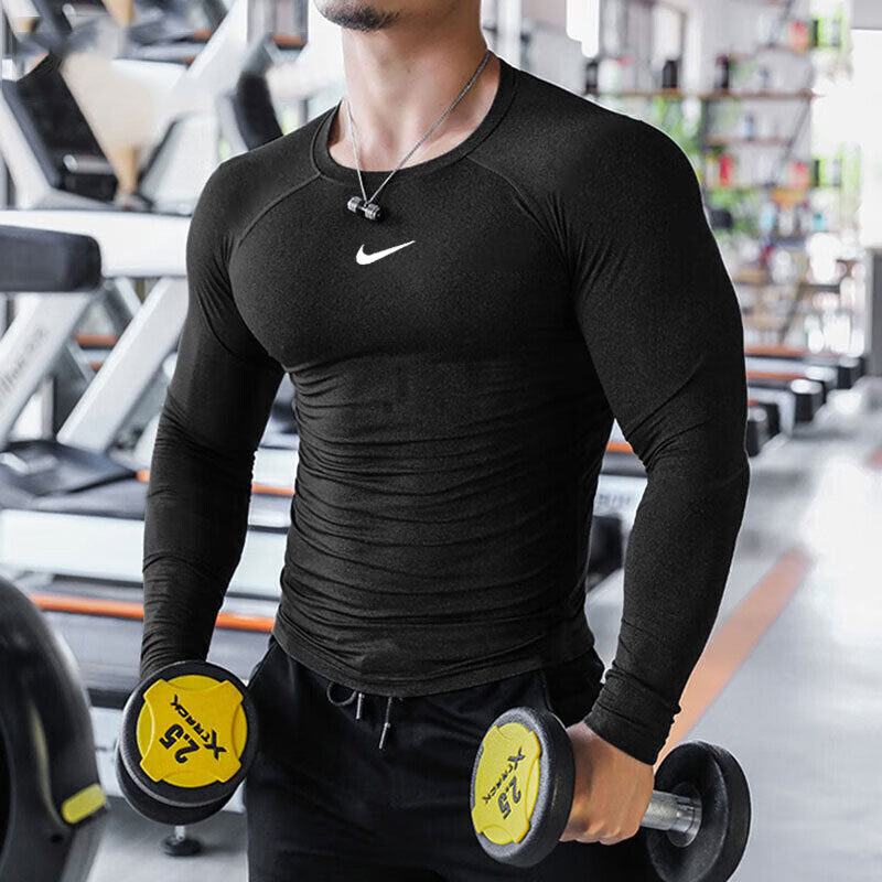 耐克紧身衣男装2025秋新款跑步透气快干弹力运动服健身衣长袖T恤