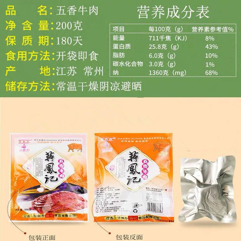 蒋凤记五香牛肉干切新鲜酱牛肉健身卤味熟食饭店下酒菜200g真空装