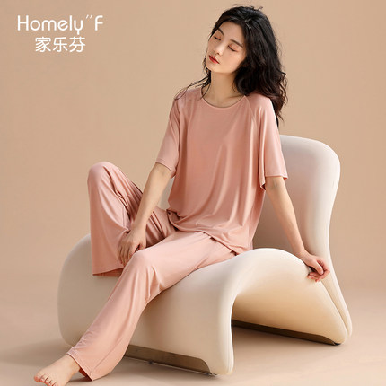 家乐芬睡衣女士夏季夏款莫代尔短袖长裤家居服夏天薄款冰丝凉套装