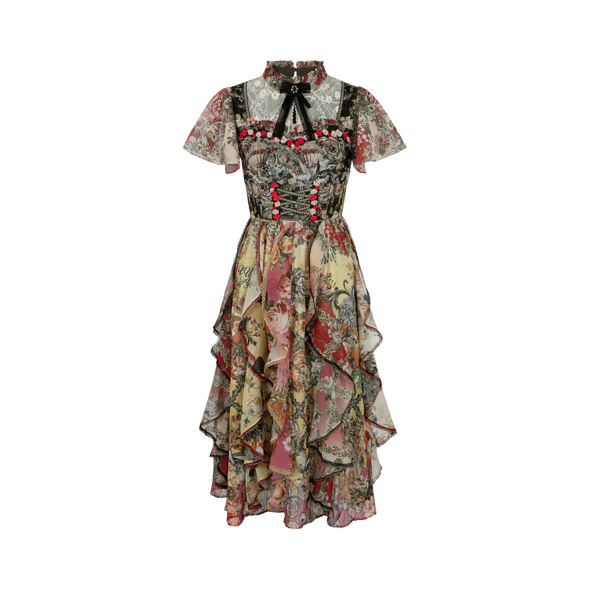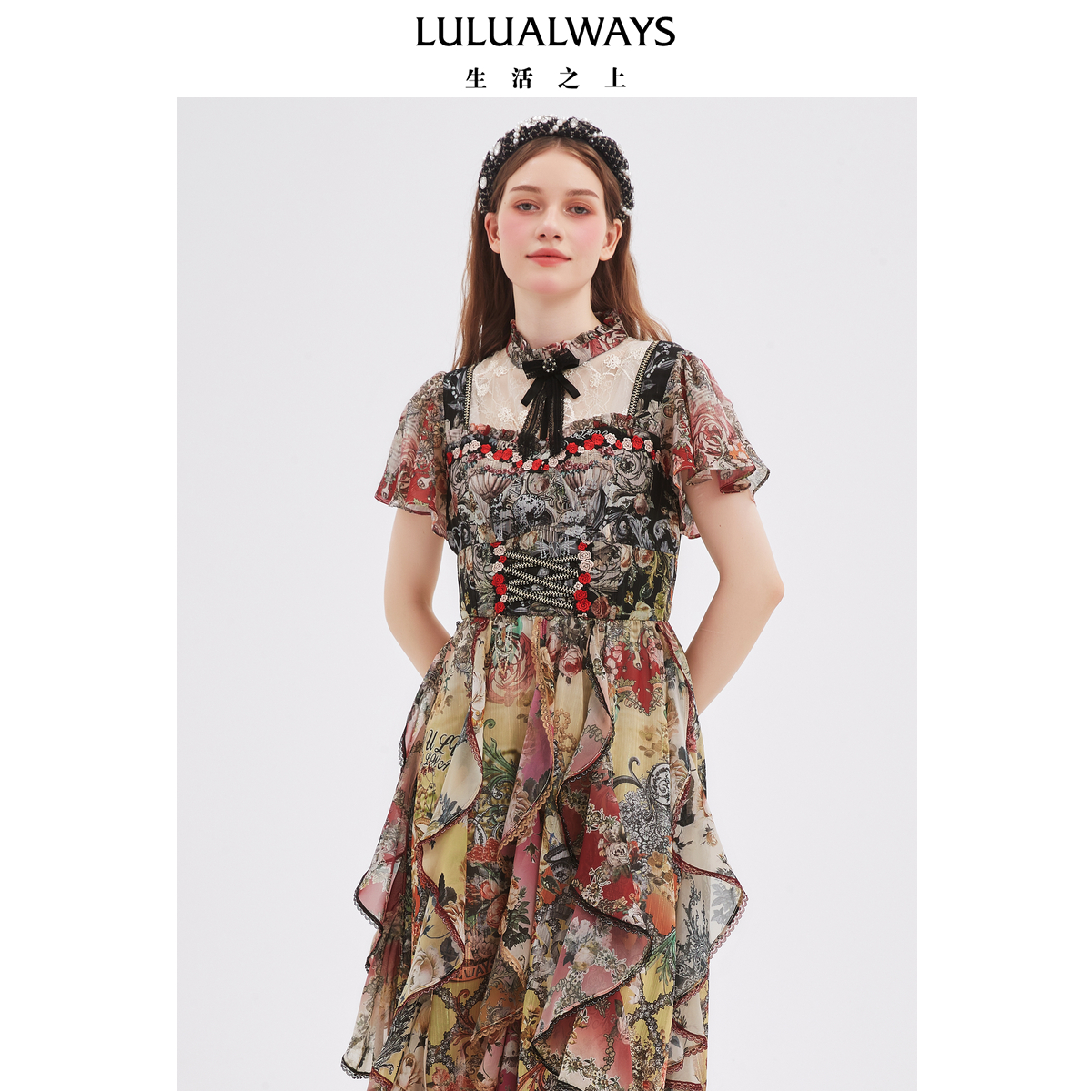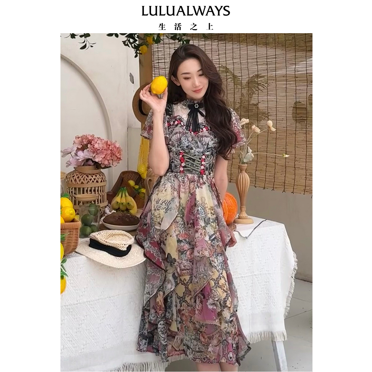 LULUALWAYS【商场同款】25夏季新款西西里优雅浪漫蔷薇花连衣裙