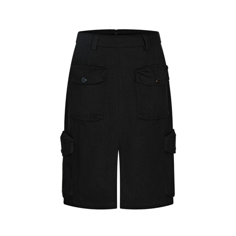 正品授权FAEfreeandeasy“共享快乐”黑色六袋工装休闲开叉半裙女