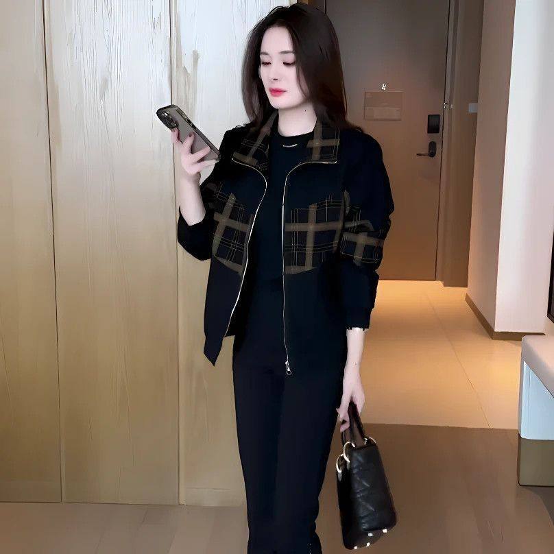 新款格子短款显瘦女士外套秋冬中年妈妈加绒保暖大码洋气减龄上衣
