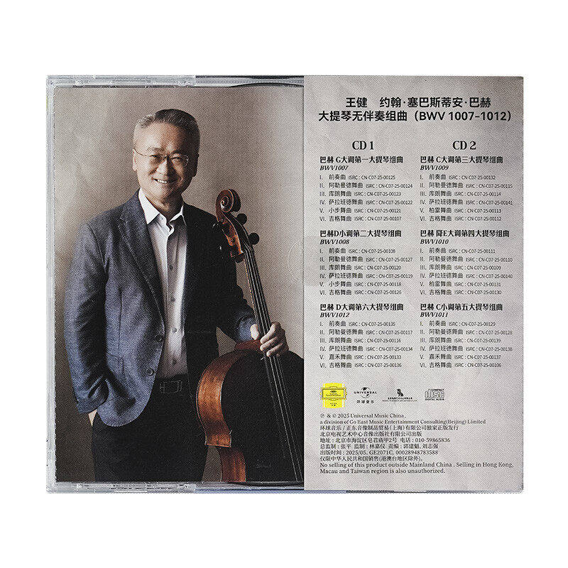 现货正版 环球古典音乐 王健 巴赫 大提琴无伴奏组曲 2CD唱片