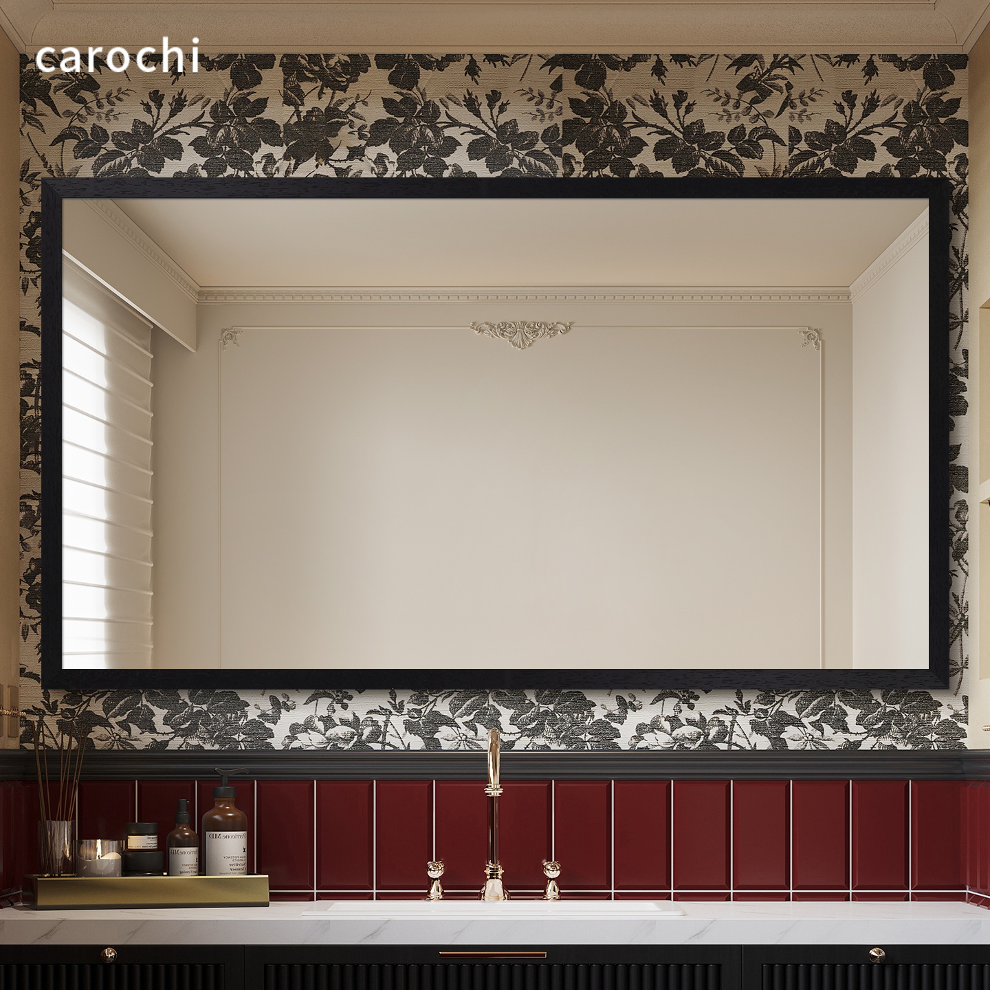 2025新款法式复古高端卫生间洗澡间洗脸镜子壁挂式实木酒店浴室镜