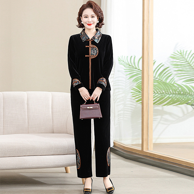 妈妈春秋长袖国风上衣裤子两件套
