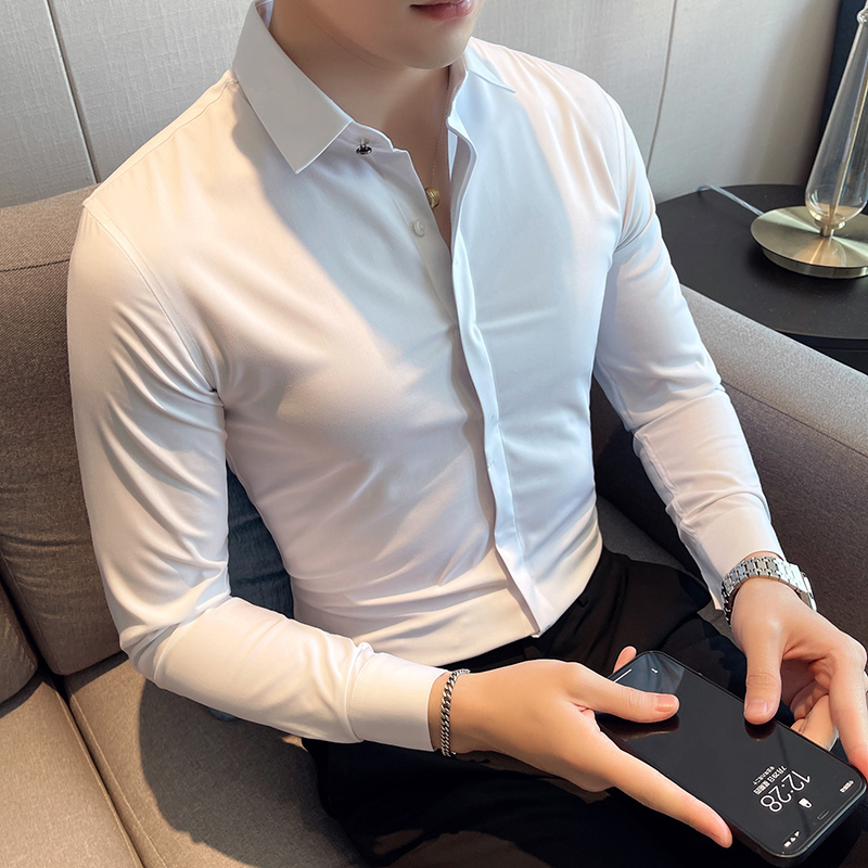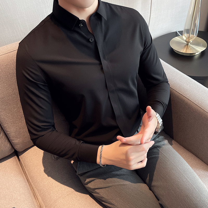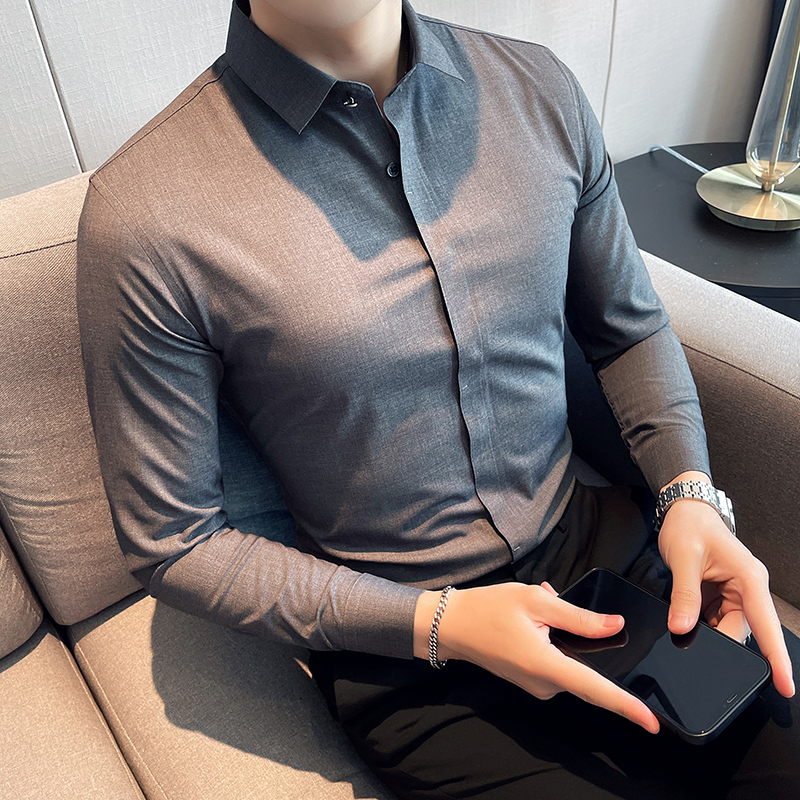 男士衬衣无痕免烫易打理春秋长袖高级感寸衫休闲商务修身薄款衬衫