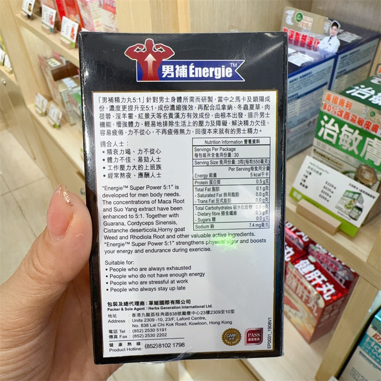 香港代购美国制造草姬Energie男补精力丸5:1胶囊90粒提升男士机能