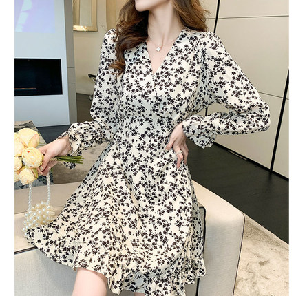 法式雪纺碎花长袖连衣裙女2022春秋温柔风初恋裙子质感高级感长裙